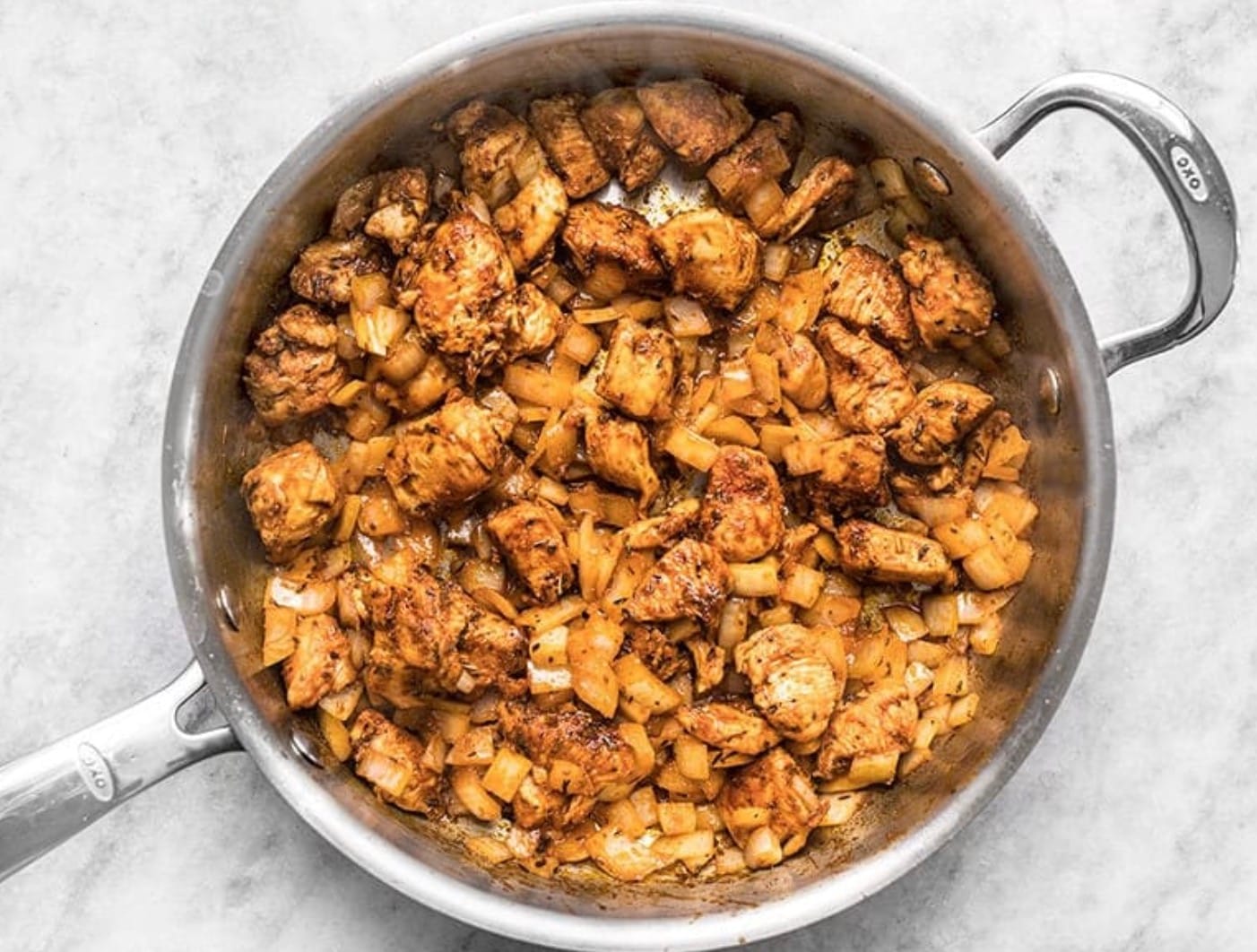 Add diced onion and cook for 2 minutes until soft. Scrape any browned bits from the pan.