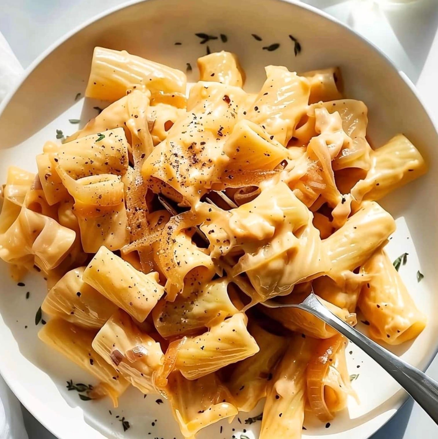 Serve your pasta hot. Sprinkle parsley on top and add extra cheese if you like. Enjoy your creamy, flavorful French onion pasta!