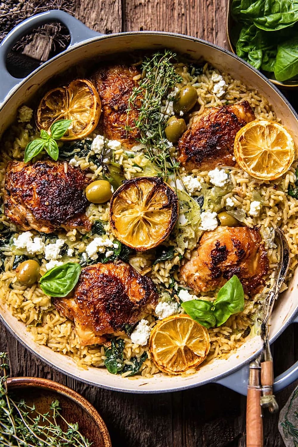 Picture this: golden chicken nestled in a bed of perfectly seasoned rice, with bright lemon slices caramelized to perfection and feta cheese melting into every single bite.