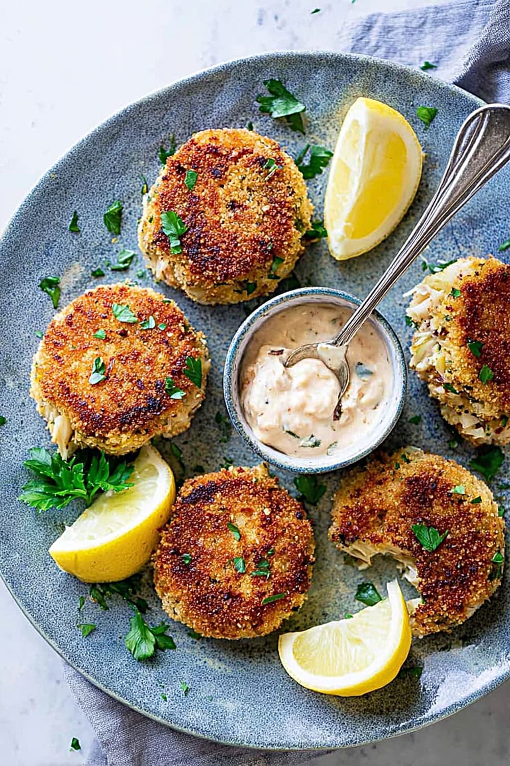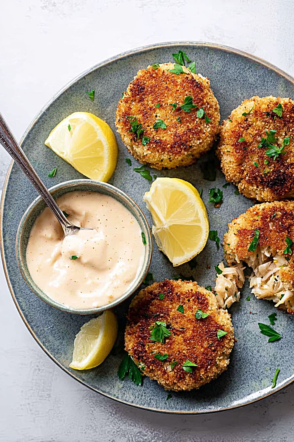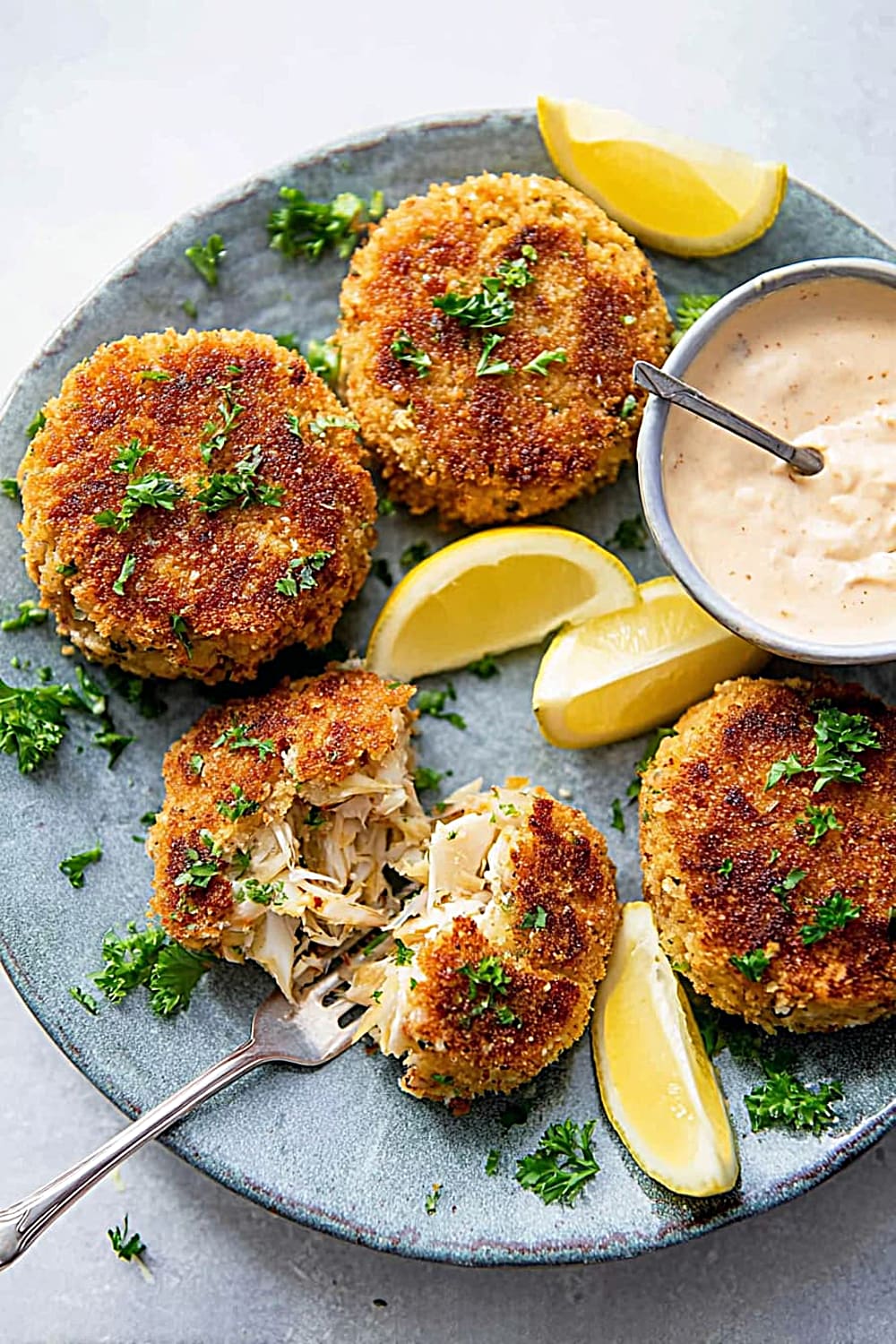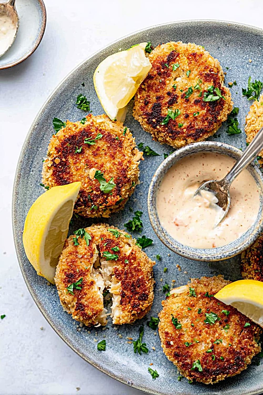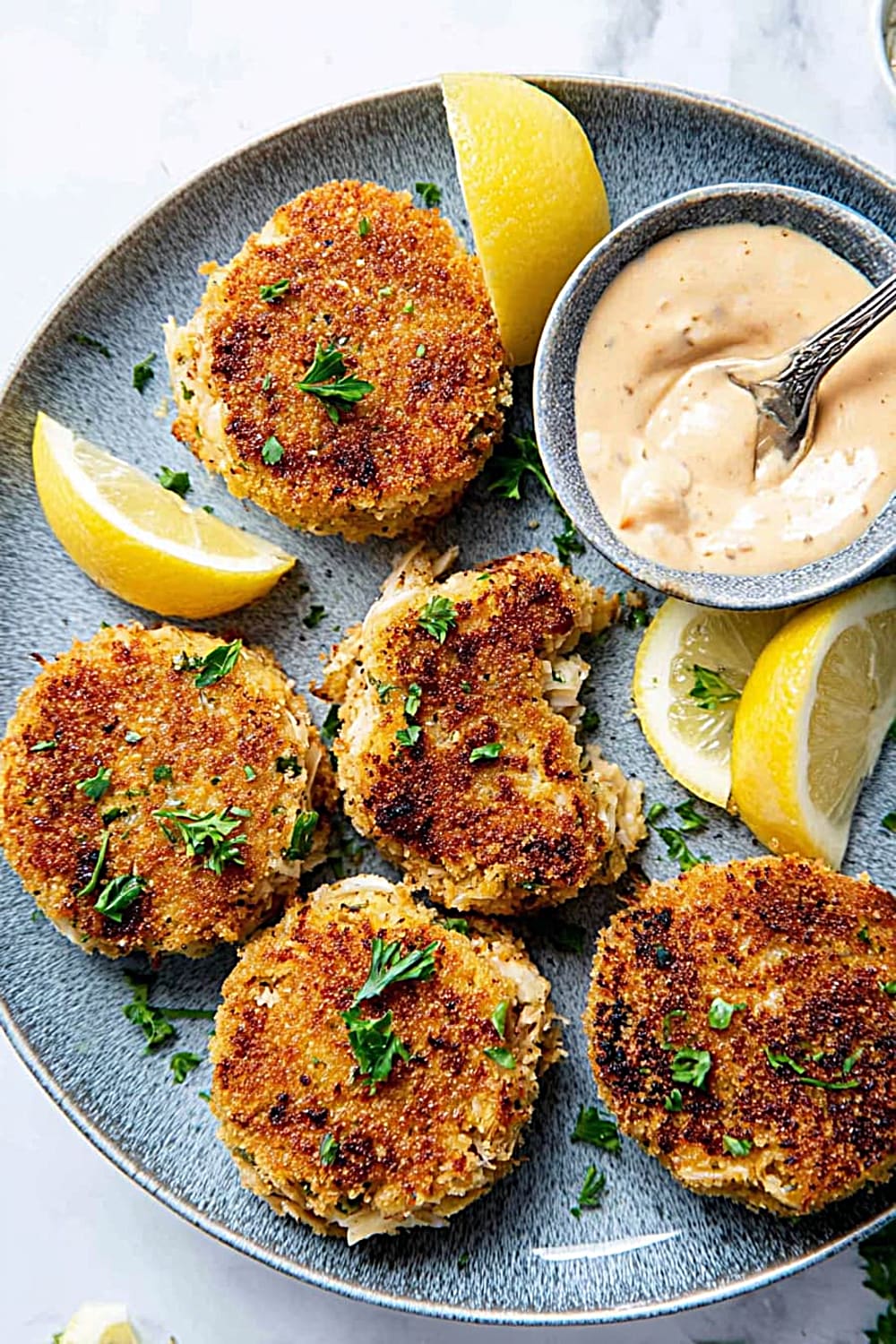 - 7 Remove the crab cakes from the skillet and drain briefly on paper towels to absorb any excess oil. Serve immediately while hot with fresh lemon slices and a side of homemade remoulade sauce for the ultimate seafood experience.