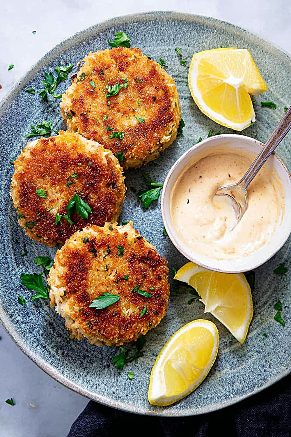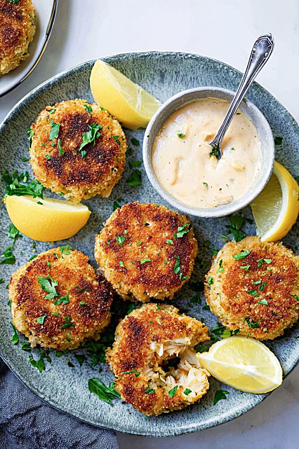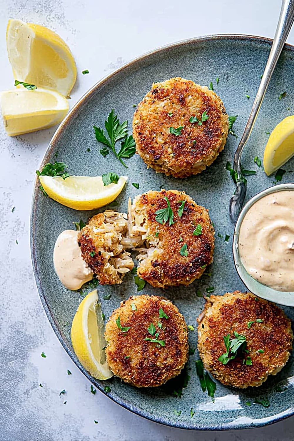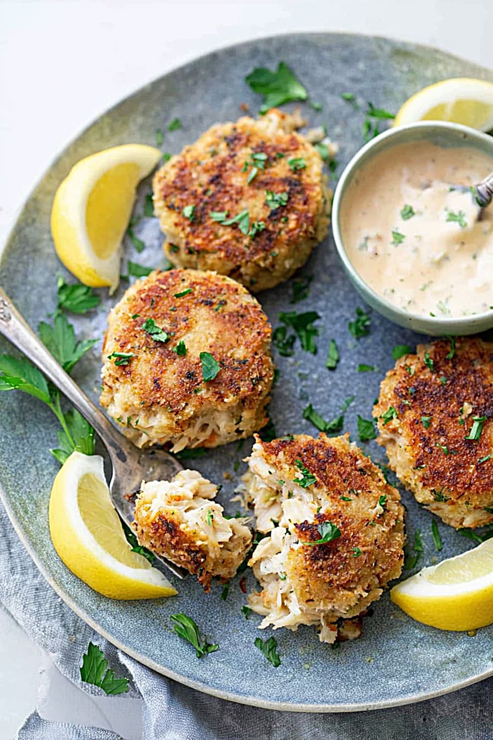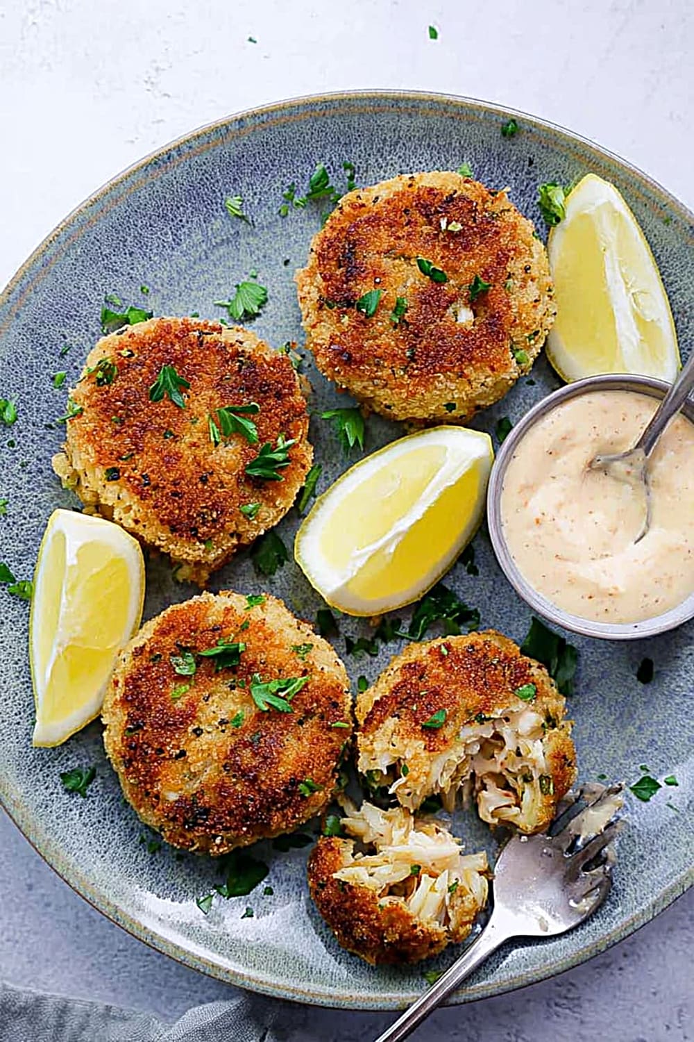 - 7 Remove the crab cakes from the skillet and drain briefly on paper towels to absorb any excess oil. Serve immediately while hot with fresh lemon slices and a side of homemade remoulade sauce for the ultimate seafood experience.