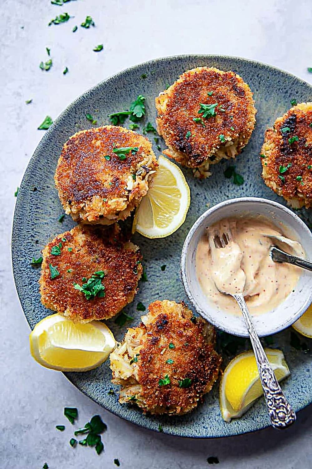 - Parchment paper – Makes cleanup easier and prevents sticking when chilling the formed crab cakes