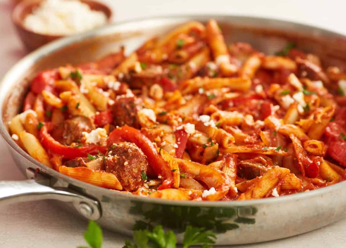 You can easily change up this tasty pasta dish! Try swapping the Italian sausage for spicy sausage, andouille, or even ground beef. Not a fan of red bell peppers? Green or yellow peppers work great too.