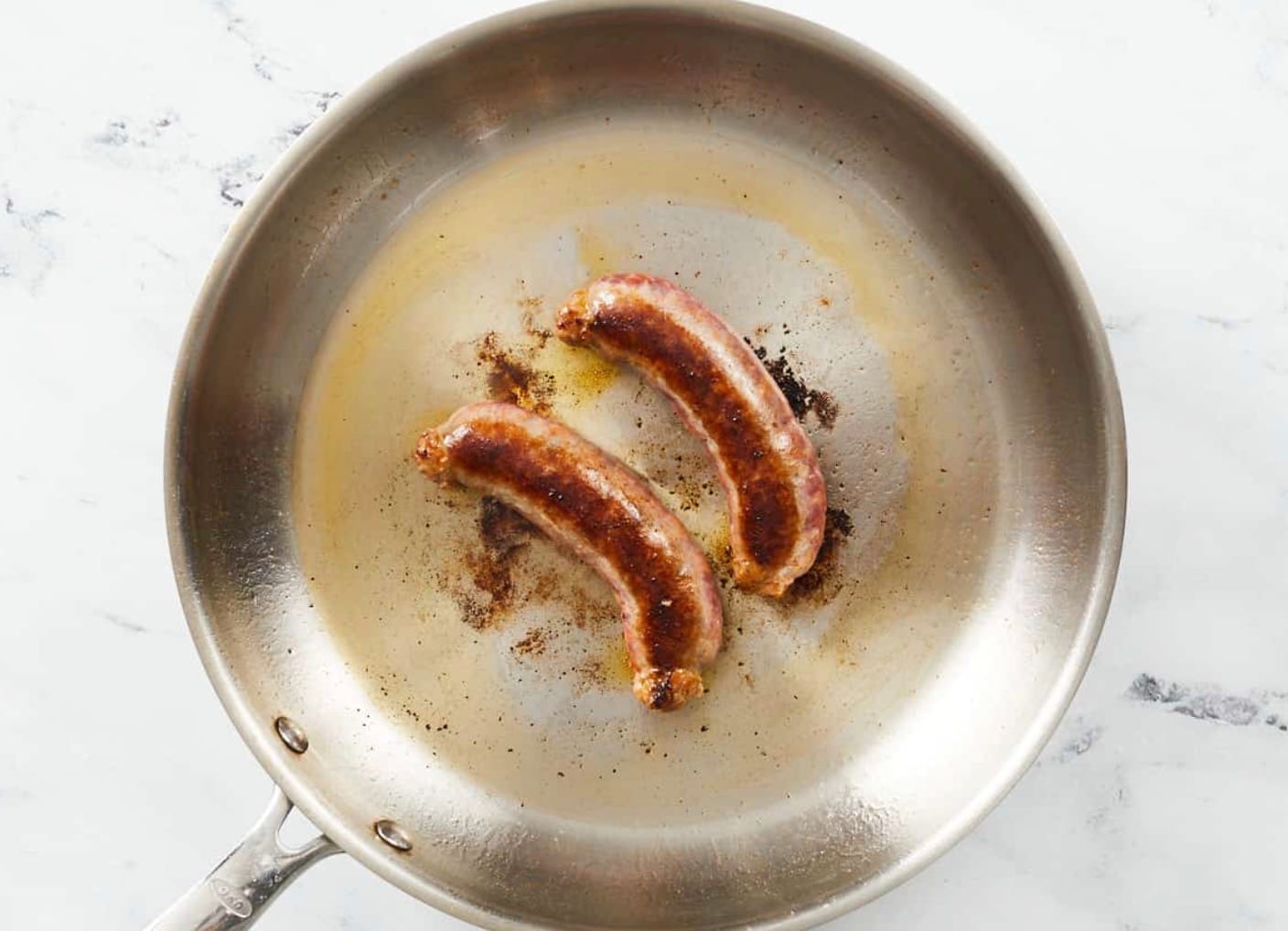 Heat a large skillet over medium heat. Add oil and sausage links. Cook for a few minutes on each side until nicely browned.