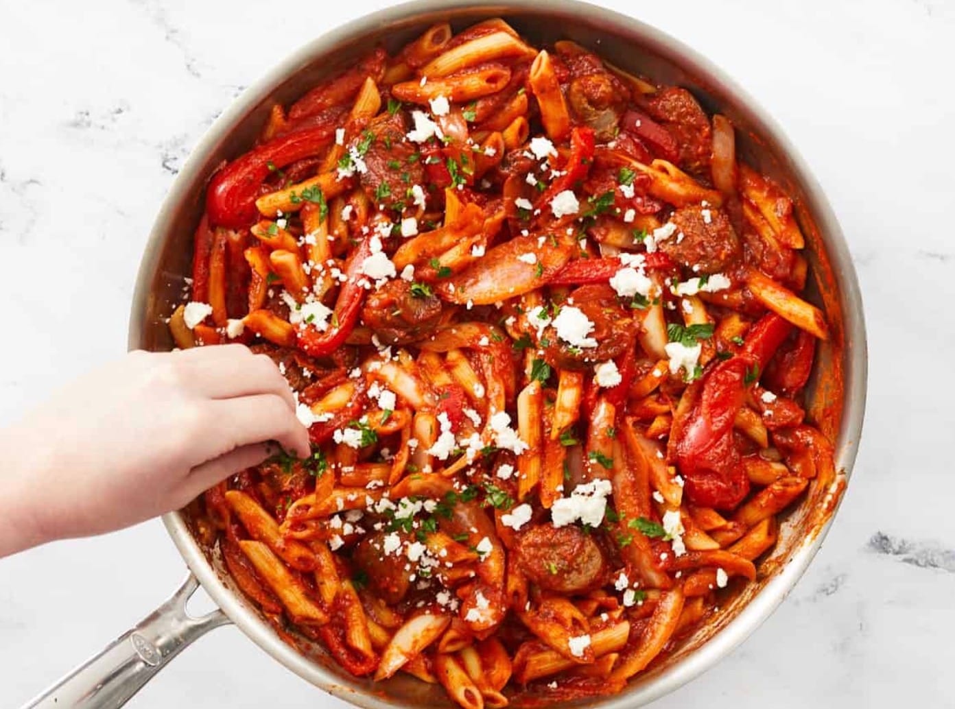You’ll love how easy this recipe is to put together. The sausage adds lots of flavor, while the peppers bring a nice crunch and sweetness. A sprinkle of feta cheese on top gives it a creamy, tangy finish.