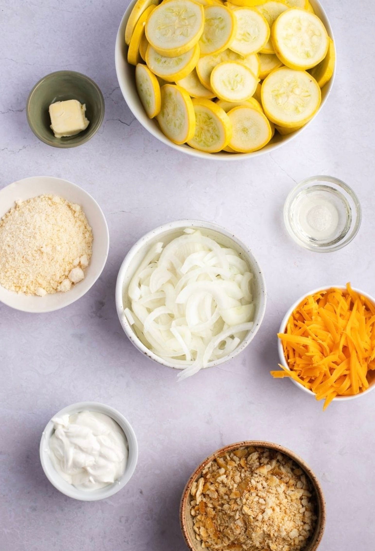 Make sure you have all these ingredients ready before you start cooking. The fresh summer squash and Vidalia onion are key for great flavor.