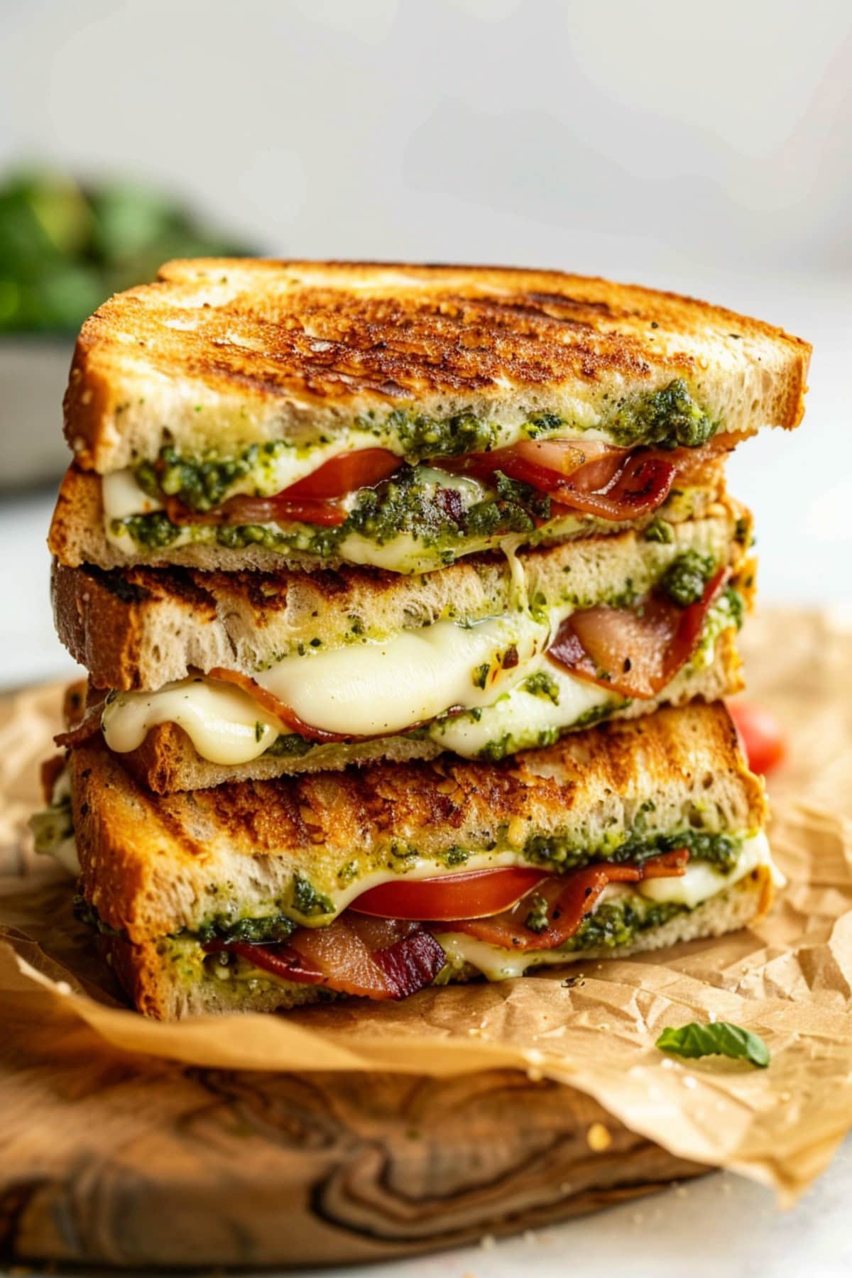 For a vegan version, try vegan cheese and pesto. You can also make it gluten-free by using gluten-free bread.