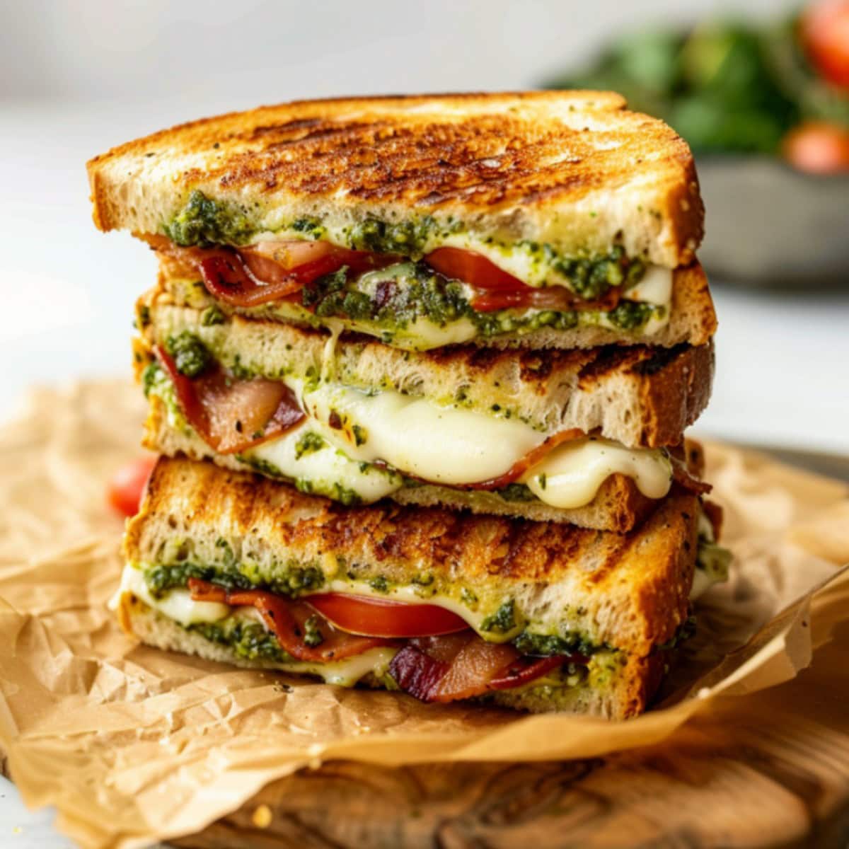 Craving comfort food with a twist? Try a pesto grilled cheese sandwich! This yummy upgrade takes the classic grilled cheese to new heights. You’ll love the combo of gooey mozzarella, zesty pesto, and crispy bacon.