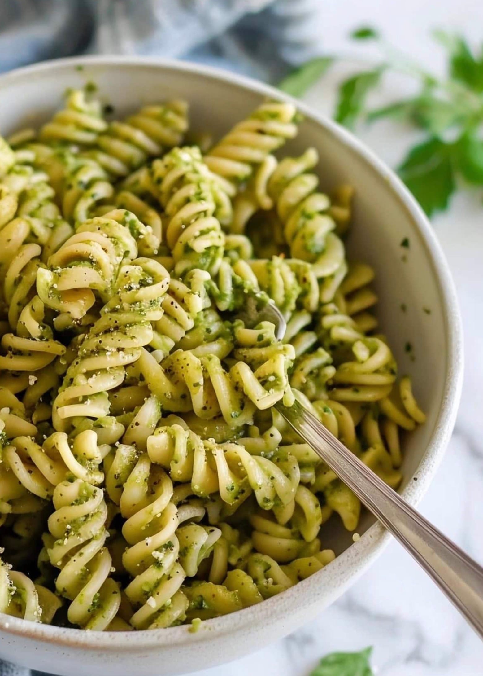 Pesto pasta is a tasty and easy meal you can whip up in no time. This recipe uses just 6 simple ingredients to create a dish that’s sure to please your taste buds. You can make this yummy pesto pasta in about 70 minutes from start to finish.