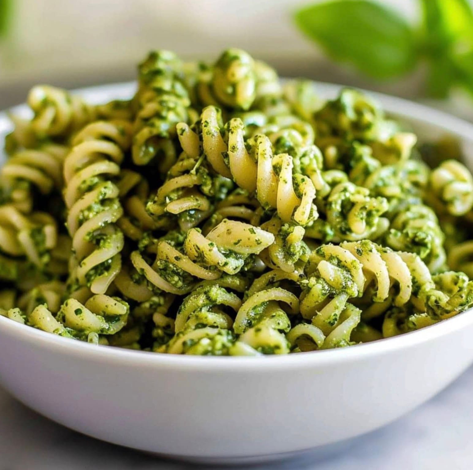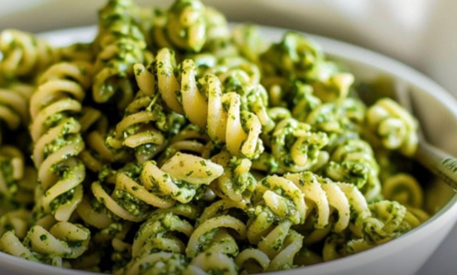The recipe calls for pasta, olive oil, onion, pesto, salt, pepper, and Parmesan cheese. It’s a great way to use up leftover pesto or try out a new homemade pesto recipe. The dish is perfect for a quick weeknight dinner or a casual get-together with friends.