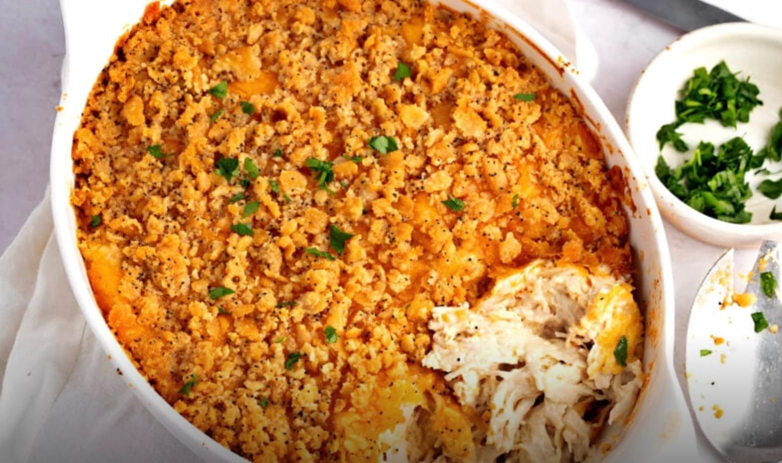Want to make it ahead? Prepare the casserole up to the point of adding the cracker topping. Cover and refrigerate for up to 24 hours. When ready to bake, add the topping and pop it in the oven.