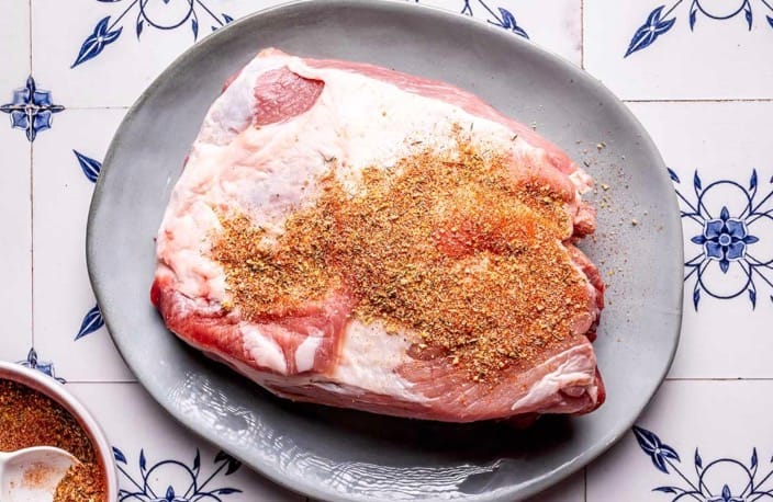 Step 1 – Season the pork. Combine the pork rub spices in a small bowl, then rub a generous layer all over the pork. Let the pork sit at room temperature to absorb the flavors.