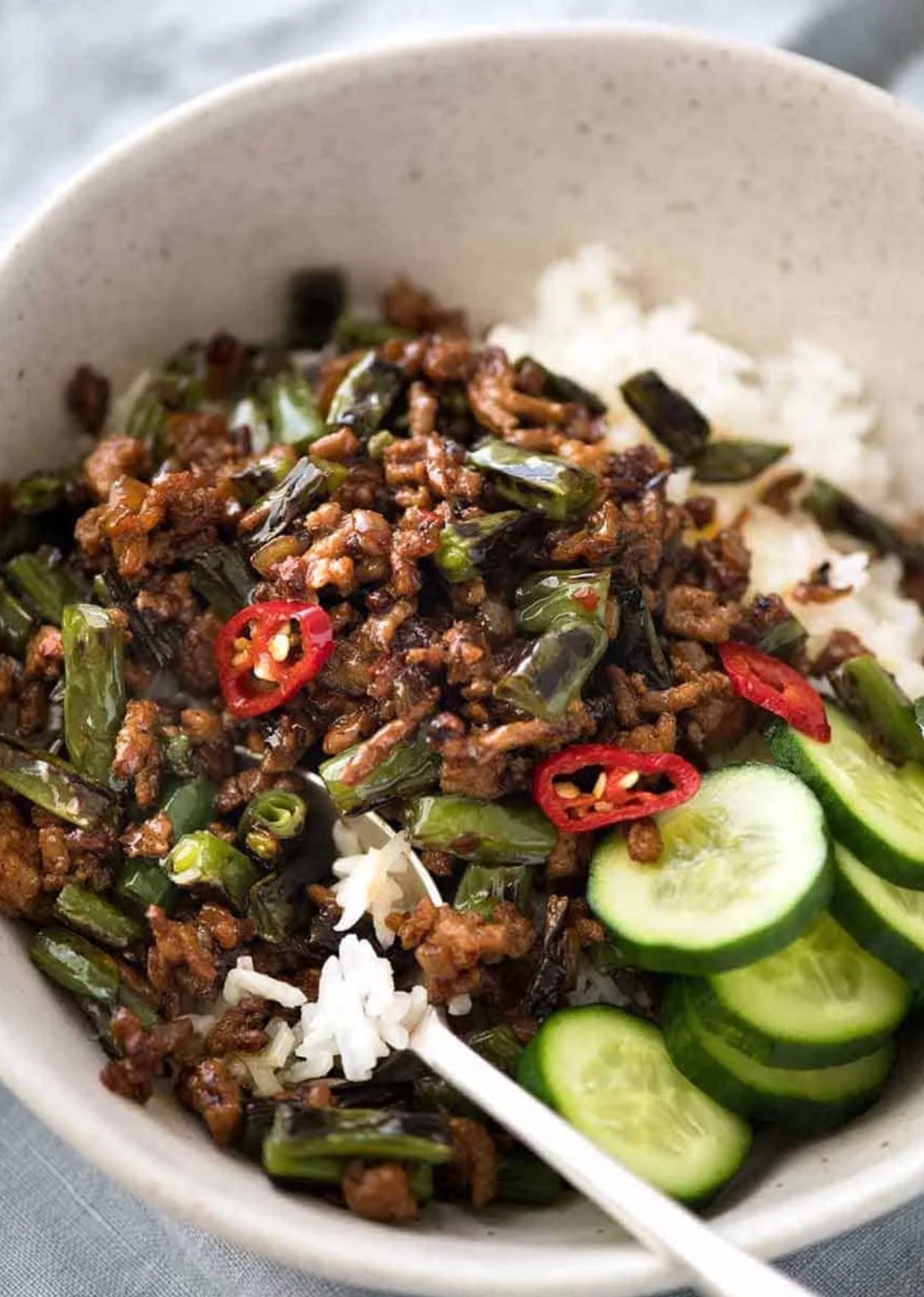 The pork and beans mix so well with rice, you can eat it all with just a spoon. It’s an easy way to enjoy Asian food at home. The recipe is simple but packed with flavor from garlic, ginger, and a quick sauce. You won’t need lots of sauce because the taste is so good on its own.