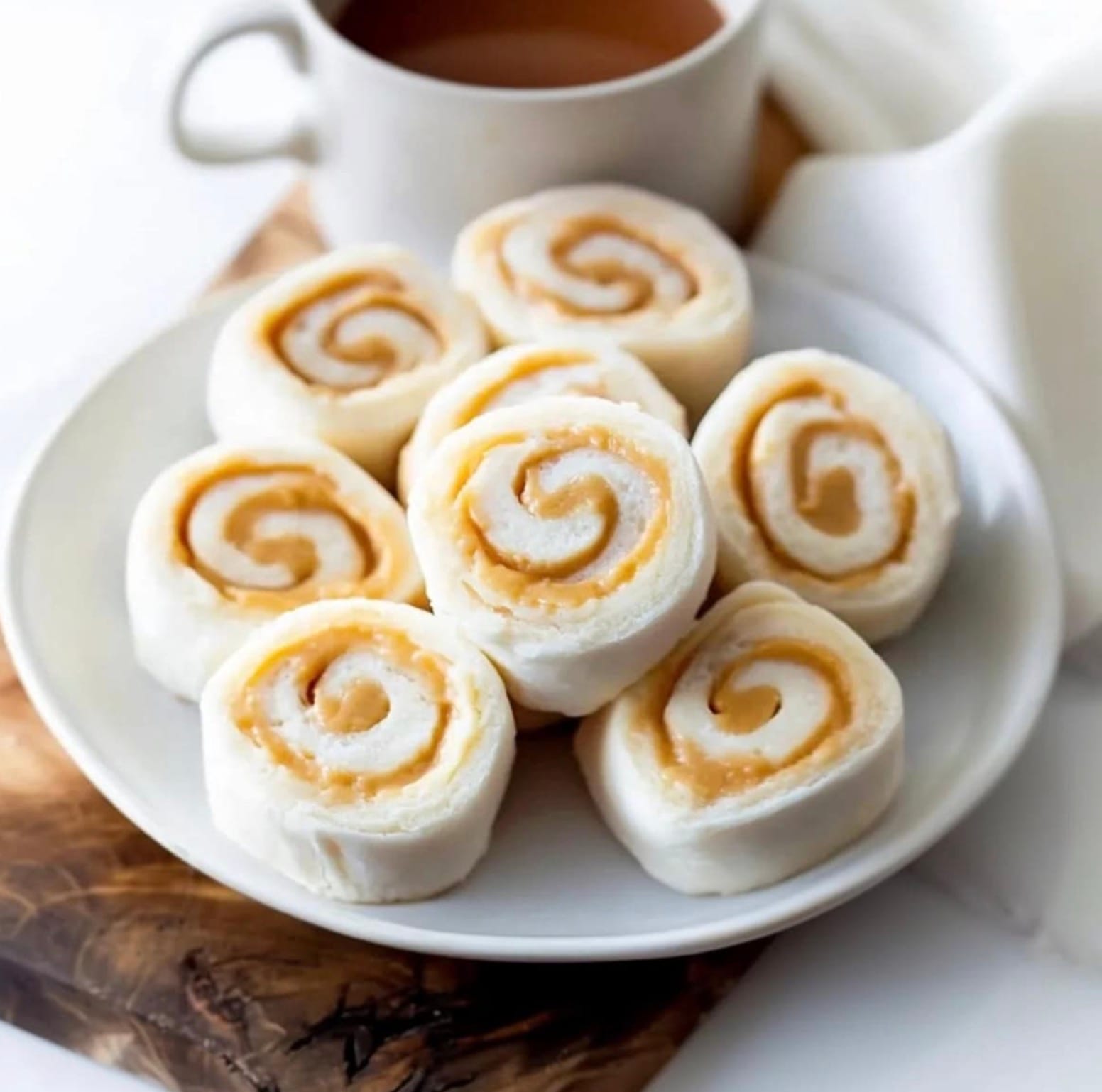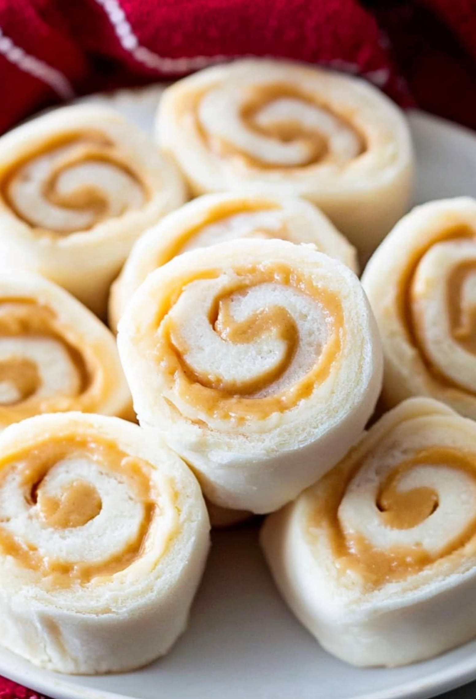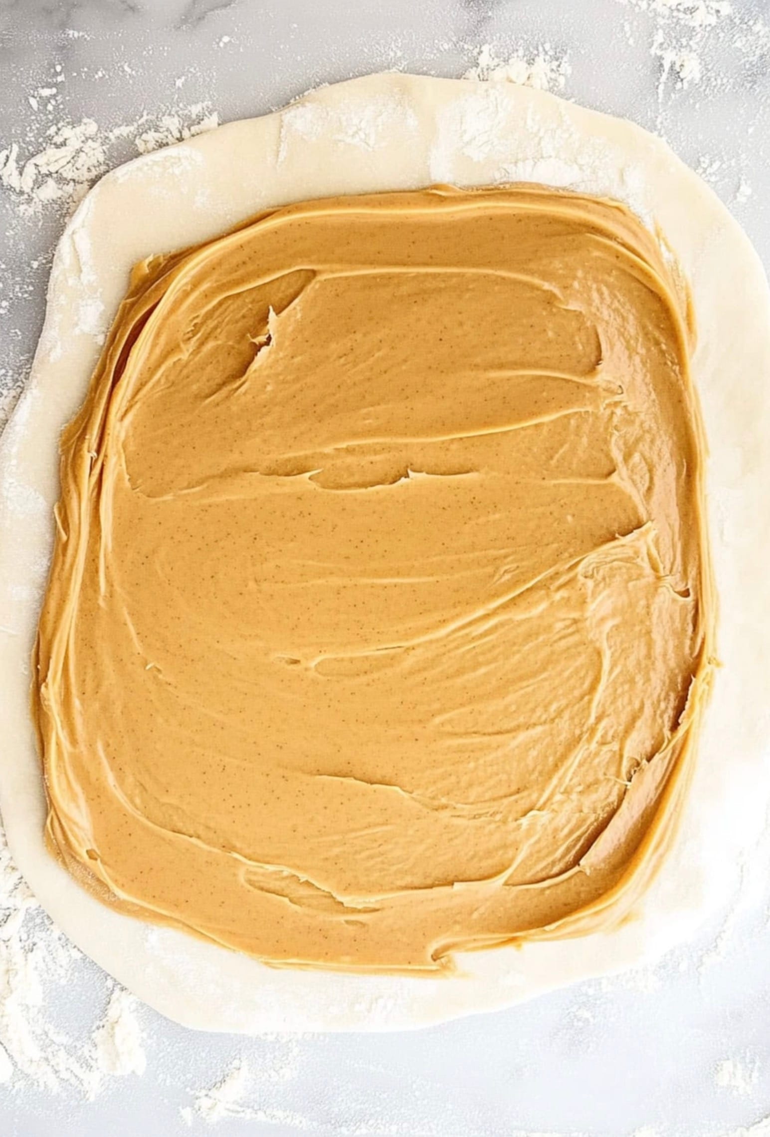 Spread 1 cup of creamy peanut butter all over the dough. Leave a small space around the edges. Roll it up like a jelly roll, starting from one of the long sides.