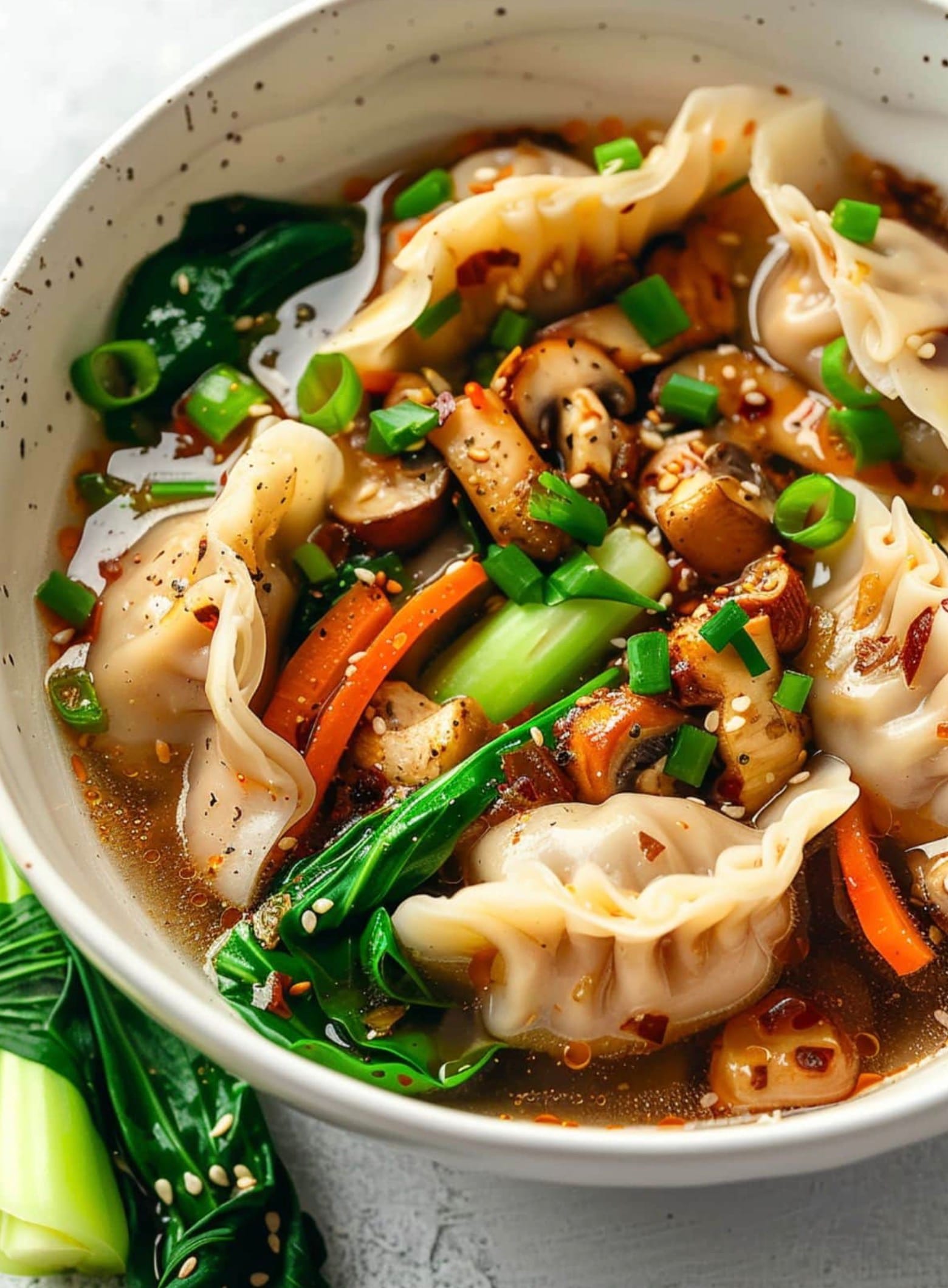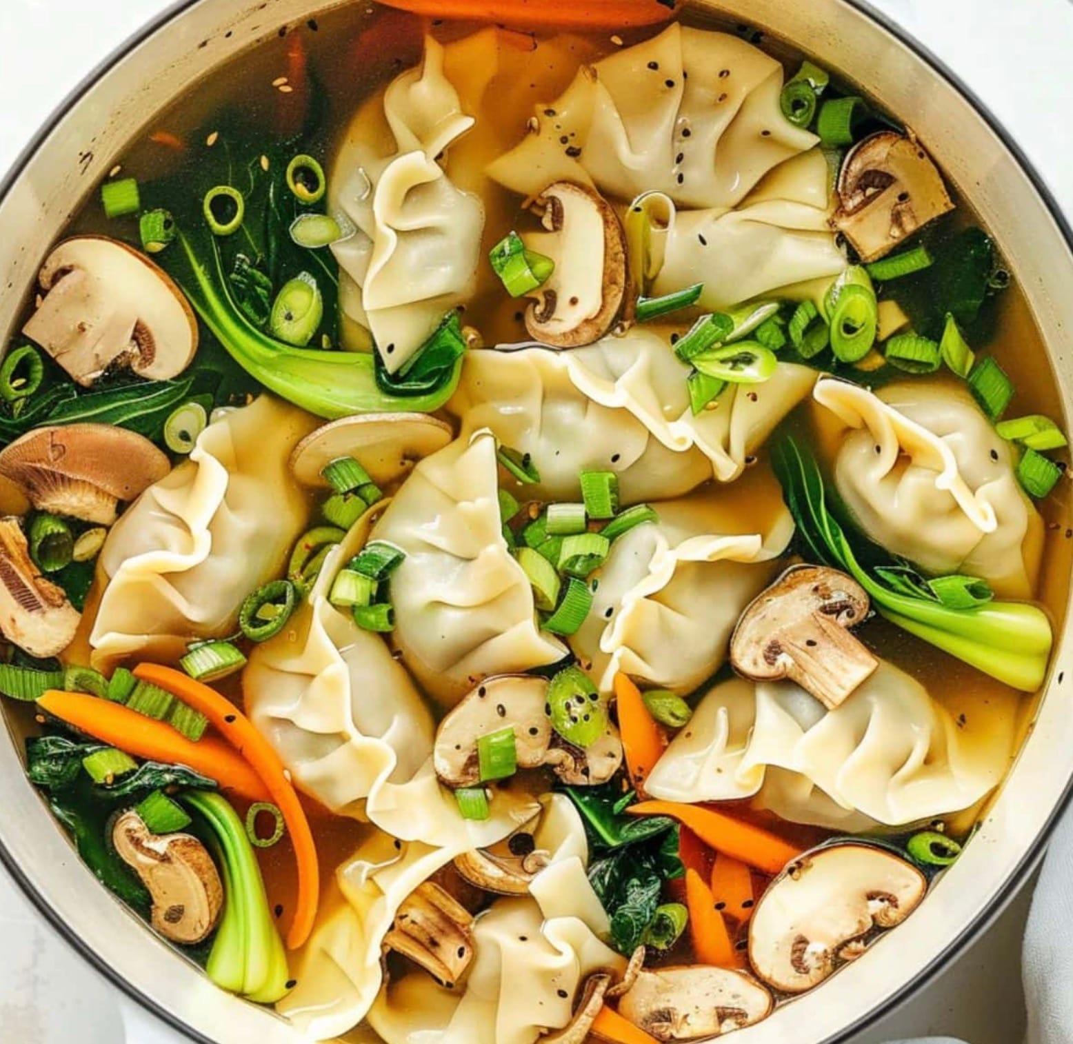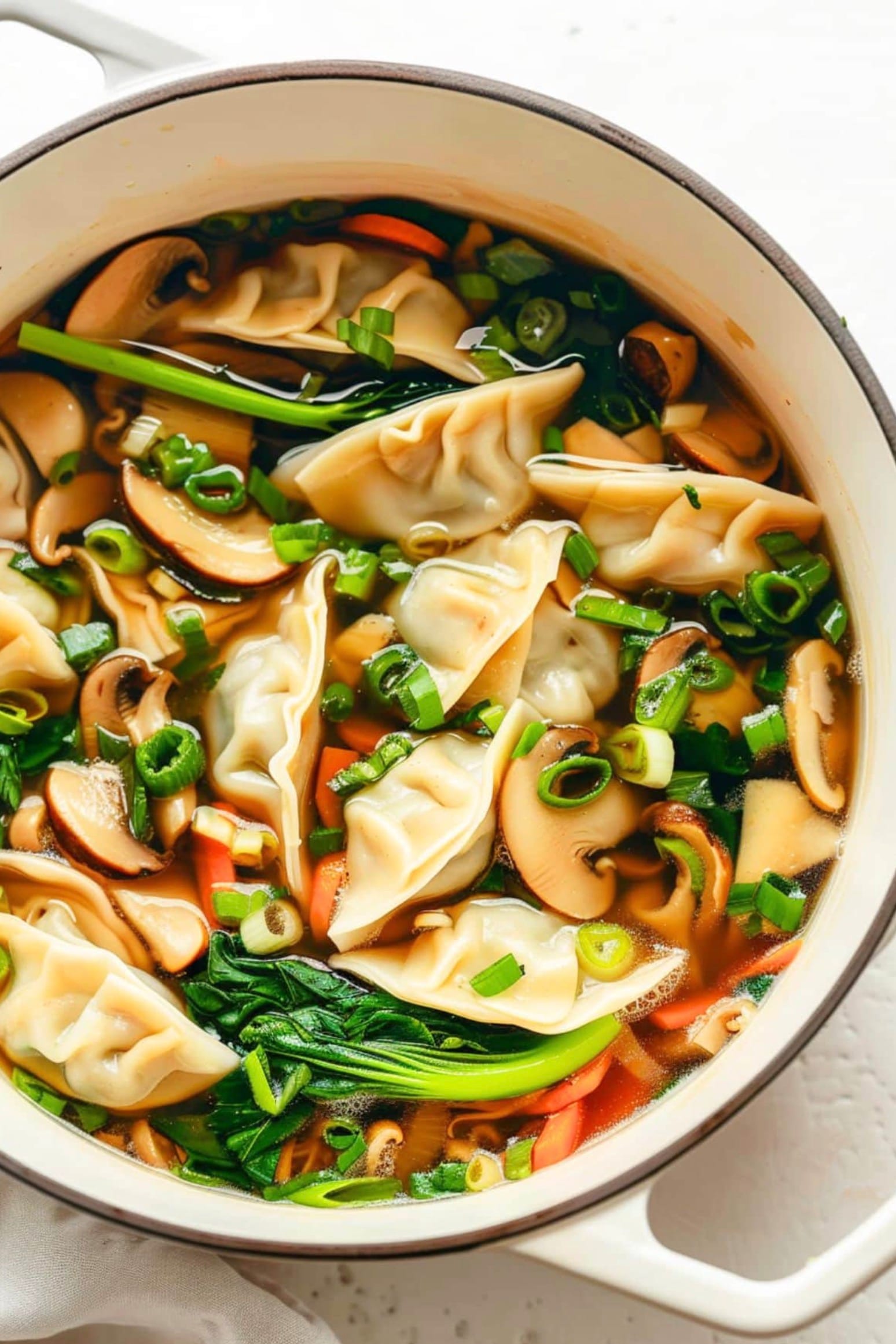 Make this soup your own by swapping ingredients. Try different mushrooms or add extra veggies like snap peas or spinach. You can use pork, chicken, or veggie potstickers – whatever you like best!