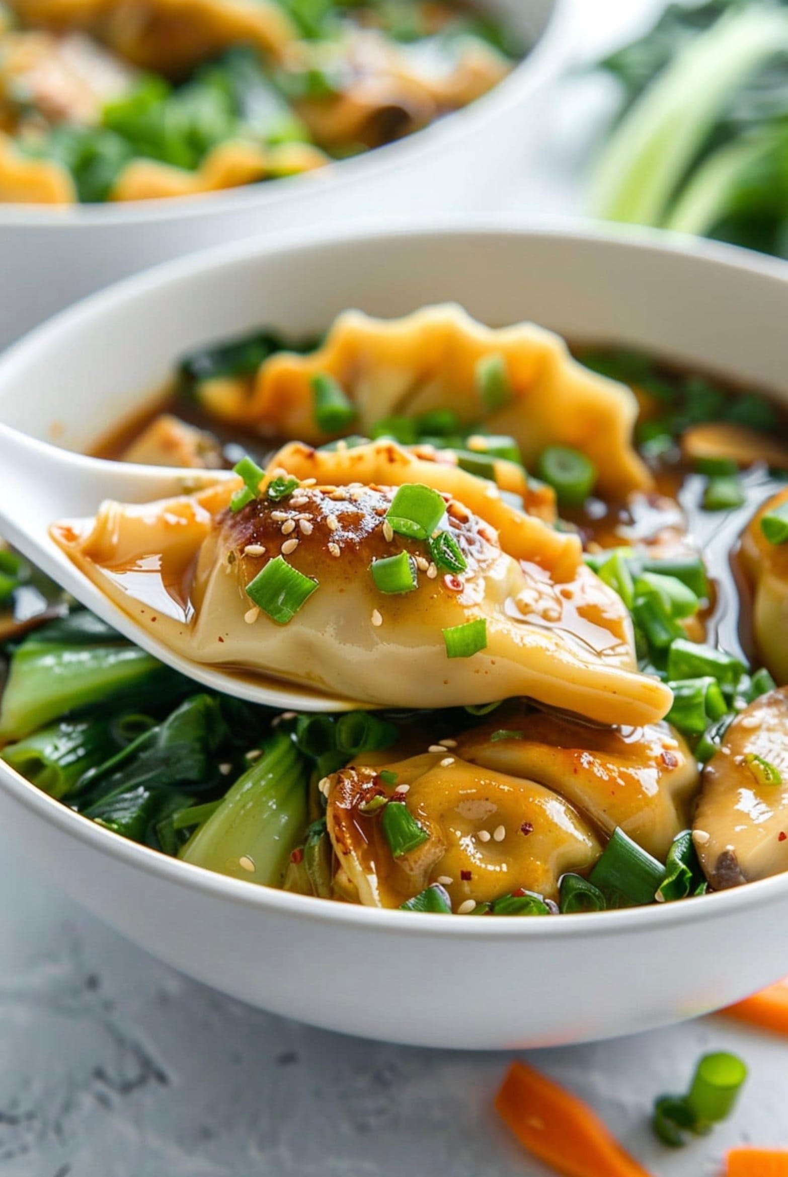 For a fun twist, try serving the soup with some crunchy wonton strips or crispy fried shallots on top. It adds a nice texture contrast to the soft potstickers.