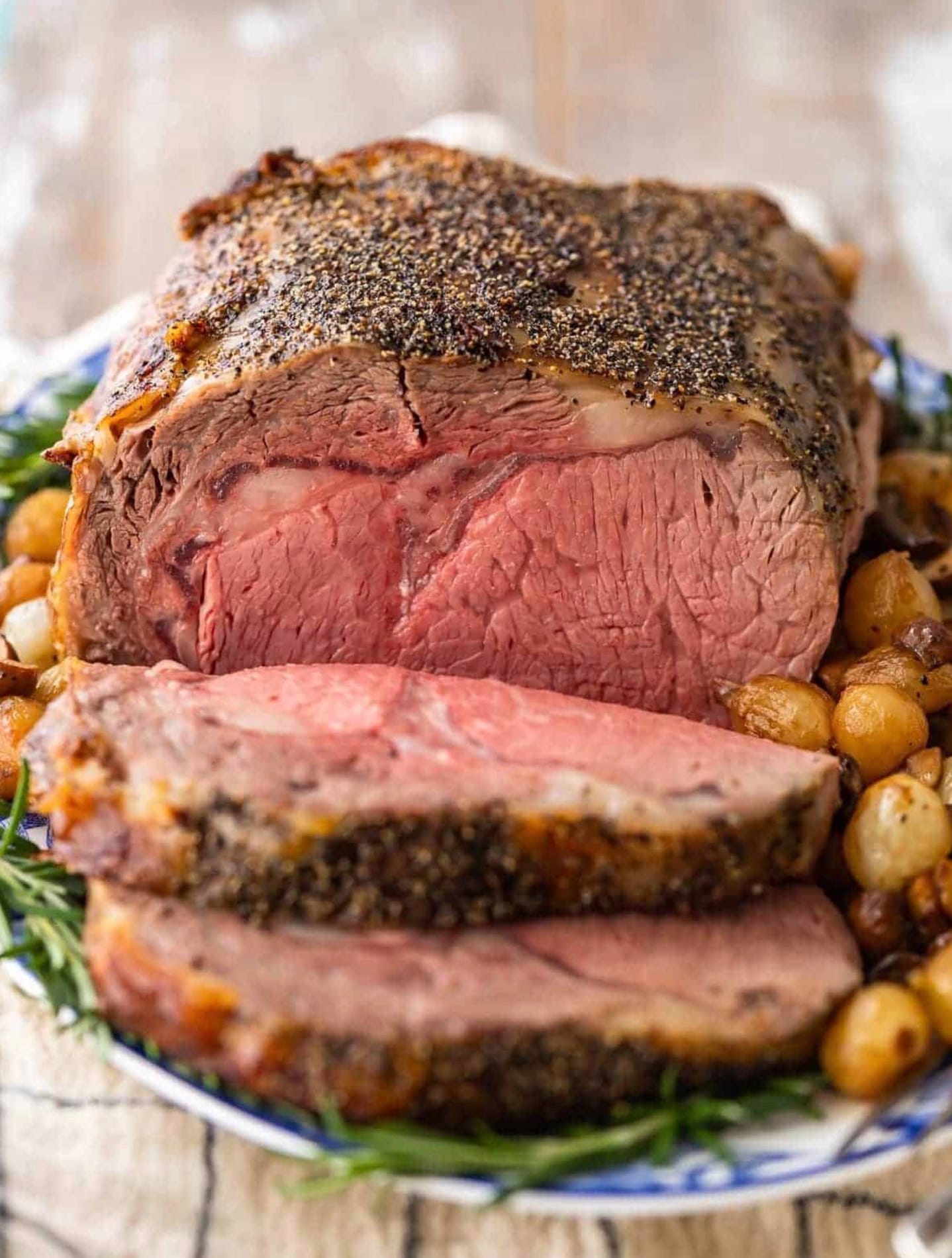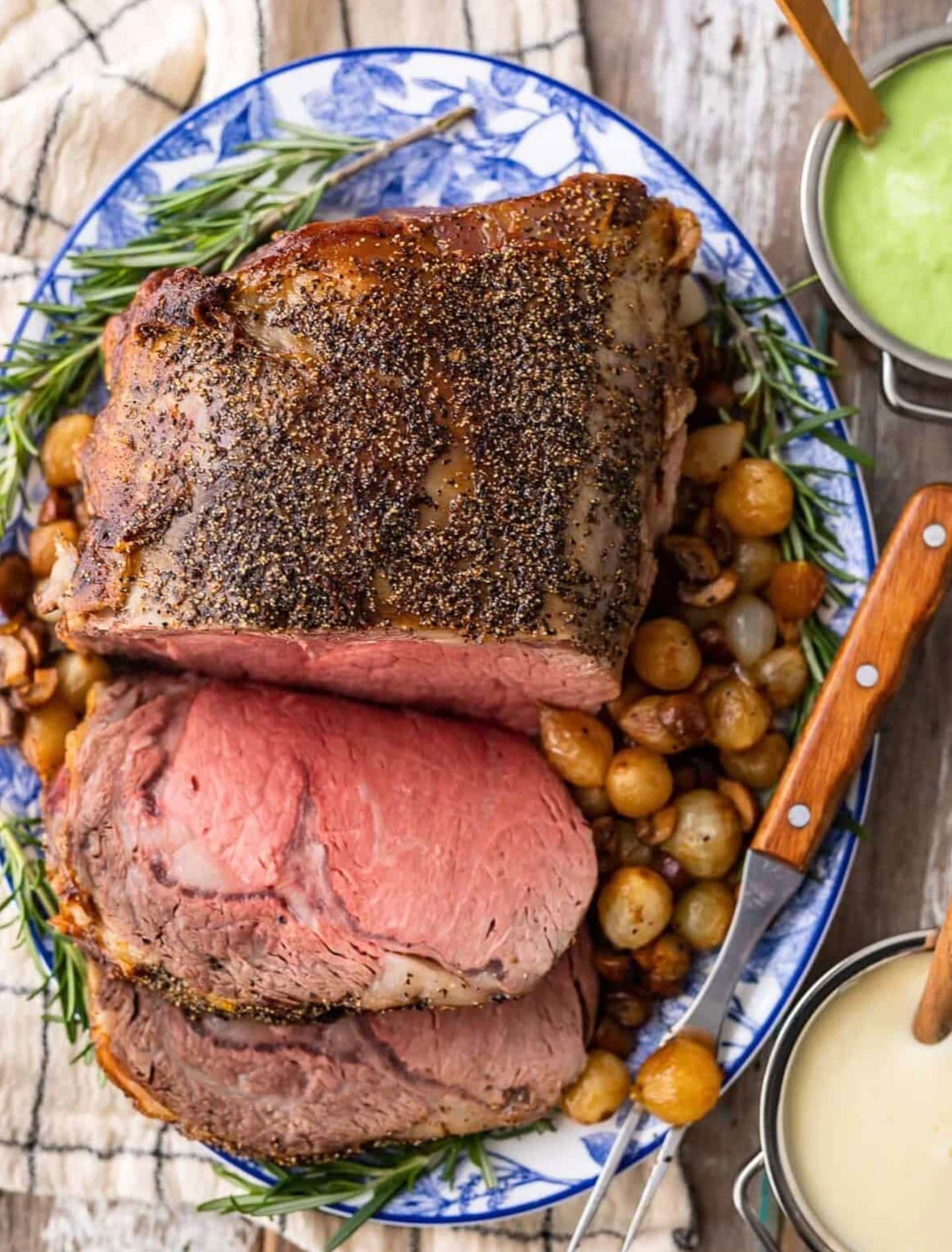 The star of the show is the prime rib roast itself. Make sure to get a nice 7-pound cut with 3-4 ribs. The kosher salt and black pepper are key for seasoning. Don’t skimp on these!