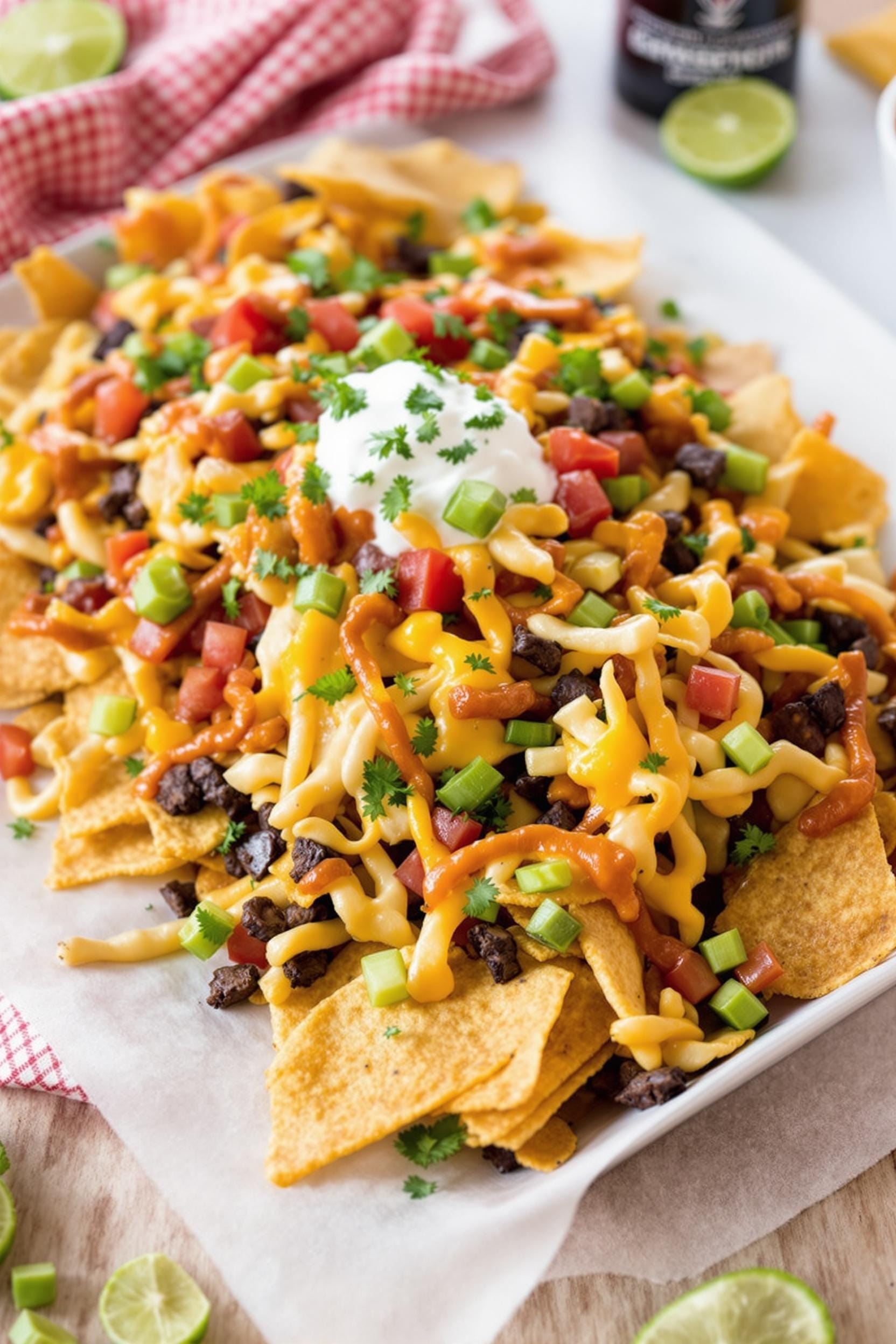 Nachos are a tasty snack that you can make at home in no time. You can whip up a batch of quick and easy nachos in just 15 minutes. This recipe serves 8 people and only needs a few simple ingredients. You’ll need ground beef, cheese, beans, chips, and some spices.
