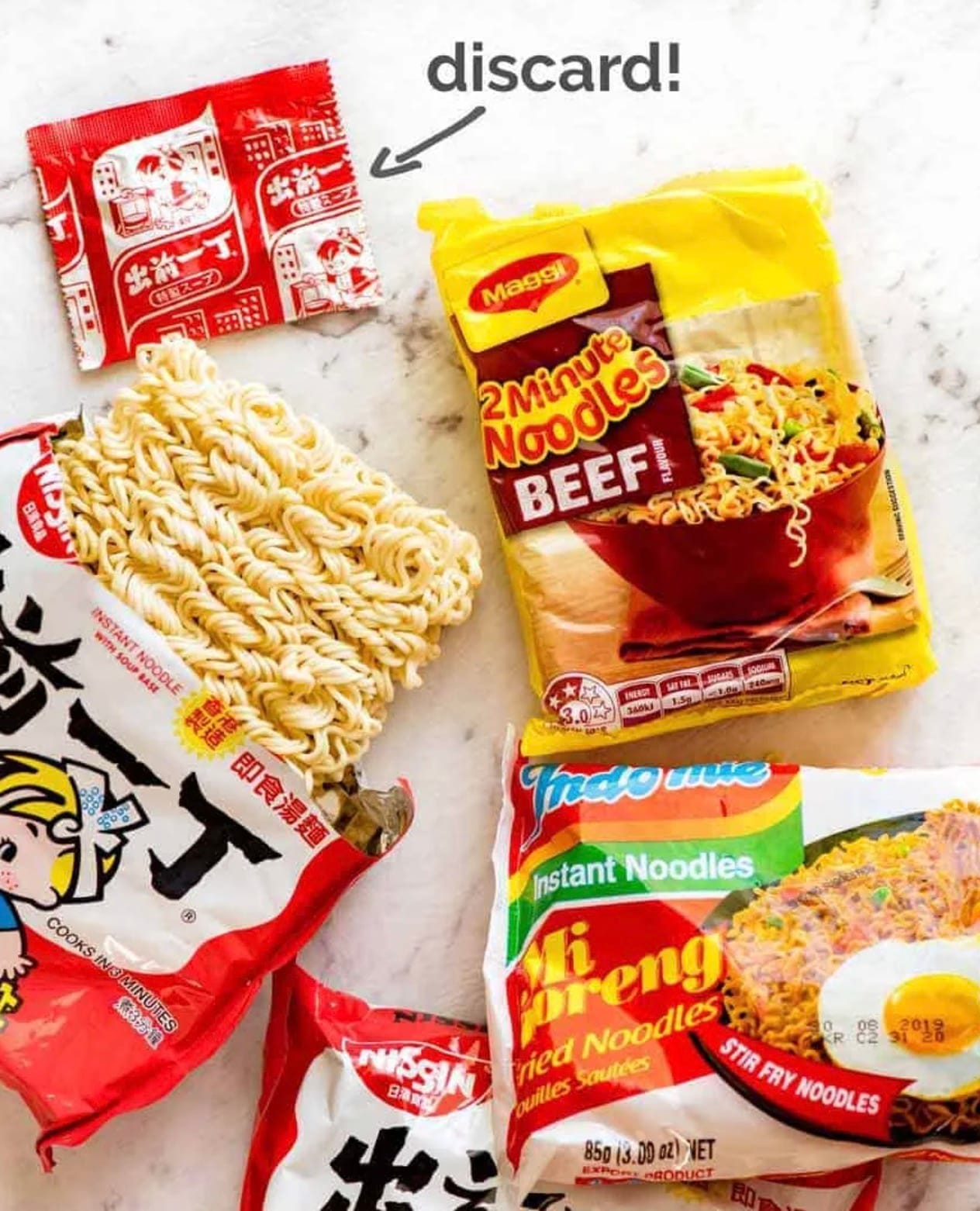 - 2 packets ramen noodles (toss out the seasoning)