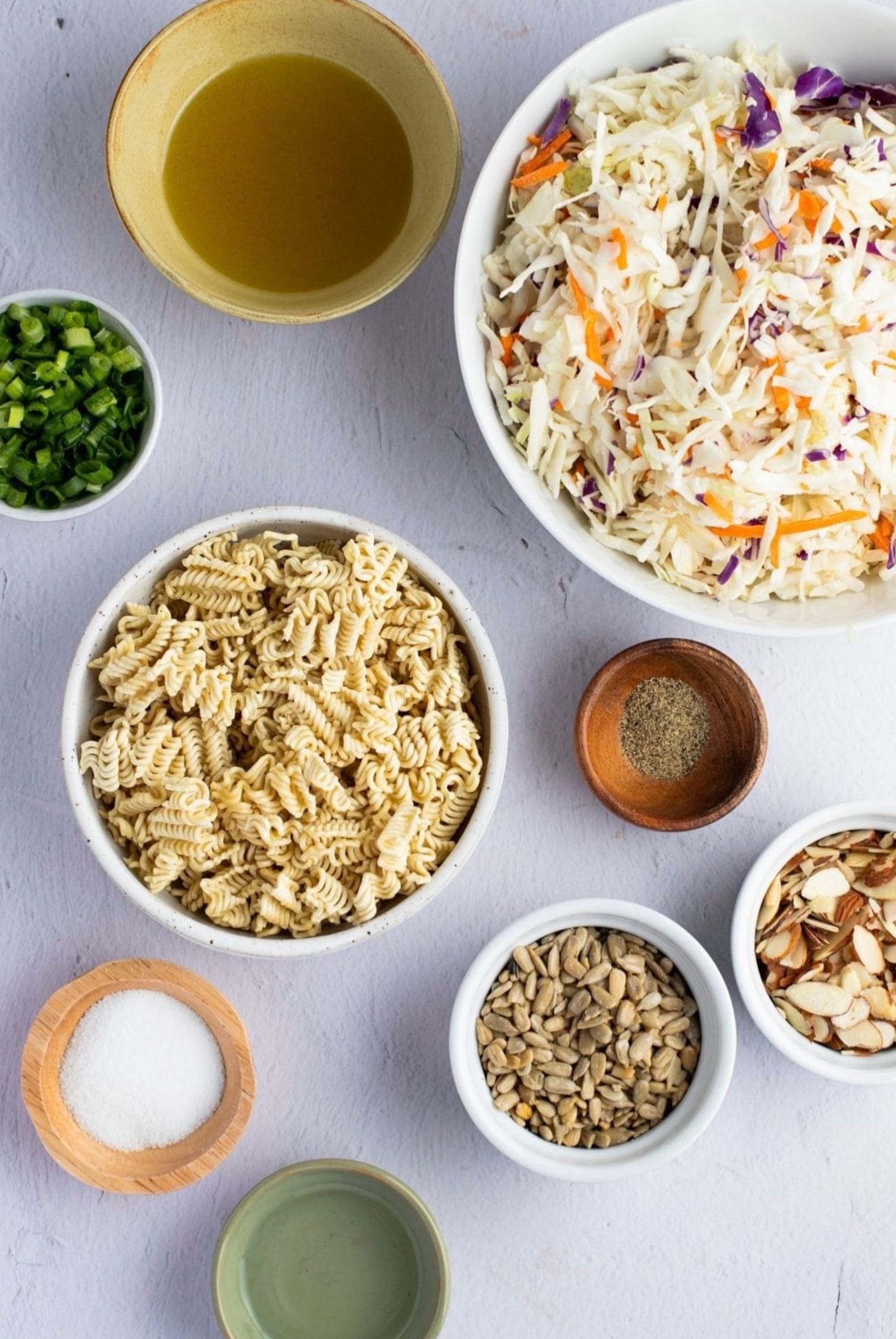 This Ramen Noodle Asian Salad recipe uses simple ingredients you can easily find at your local grocery store. The salad combines crunchy vegetables with toasted noodles and nuts, while the dressing adds a tangy, savory flavor.