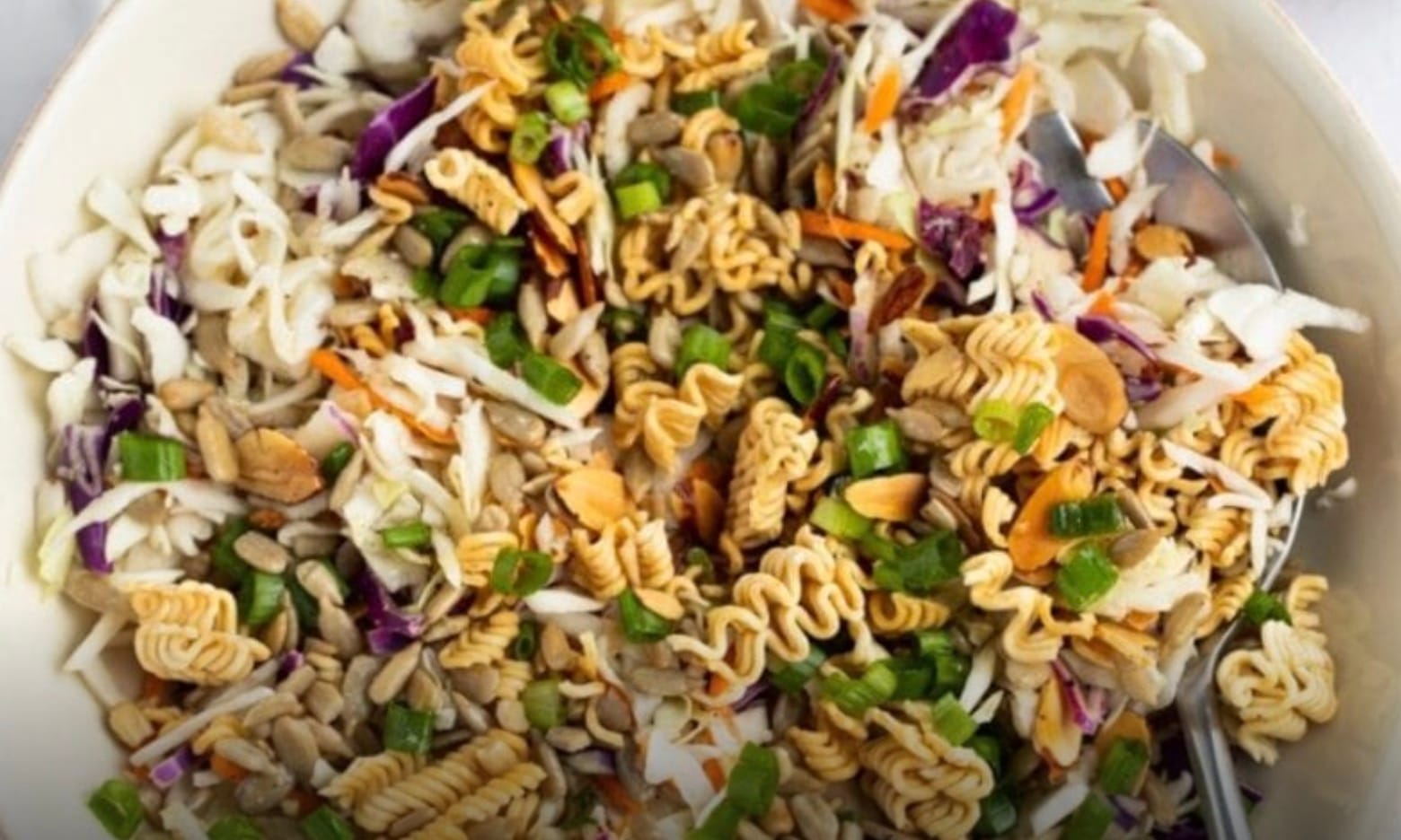 Ramen noodle Asian salad is a tasty dish you can make for your next get-together. It’s quick to put together and feeds a crowd. This crunchy salad serves 8 people and takes only 25 minutes to make.