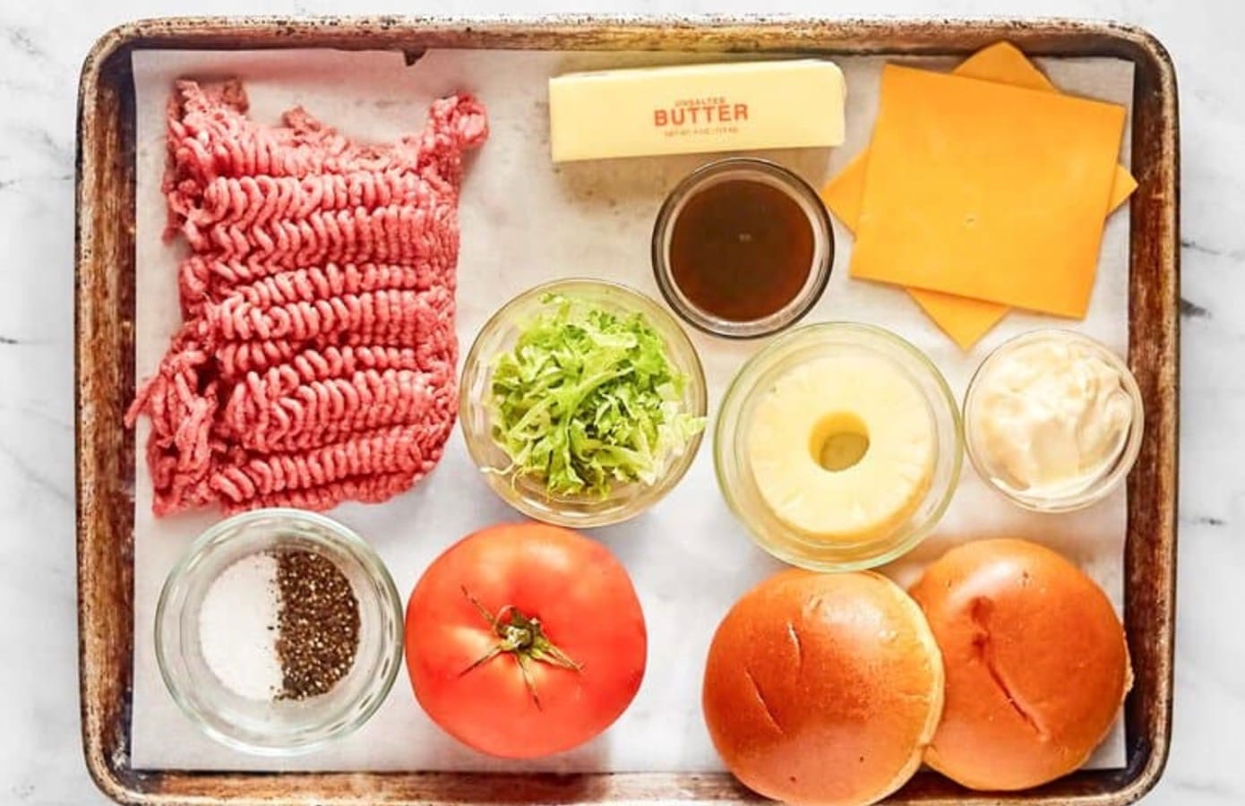 Make sure you have all these ingredients ready before you start cooking. The 80/20 ground chuck will give your burgers the perfect balance of flavor and juiciness. Fresh pineapple rings work best, but canned will do in a pinch.
