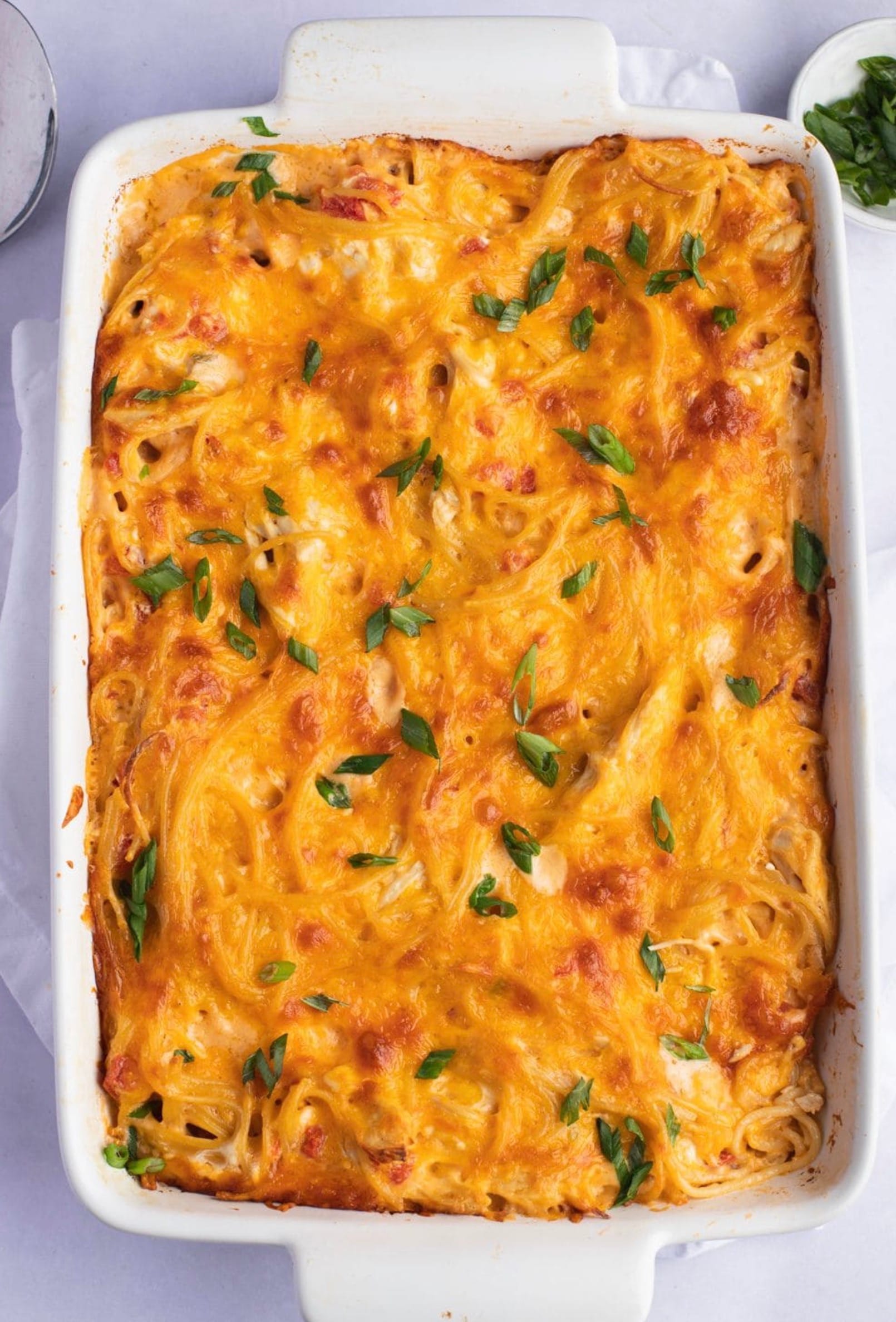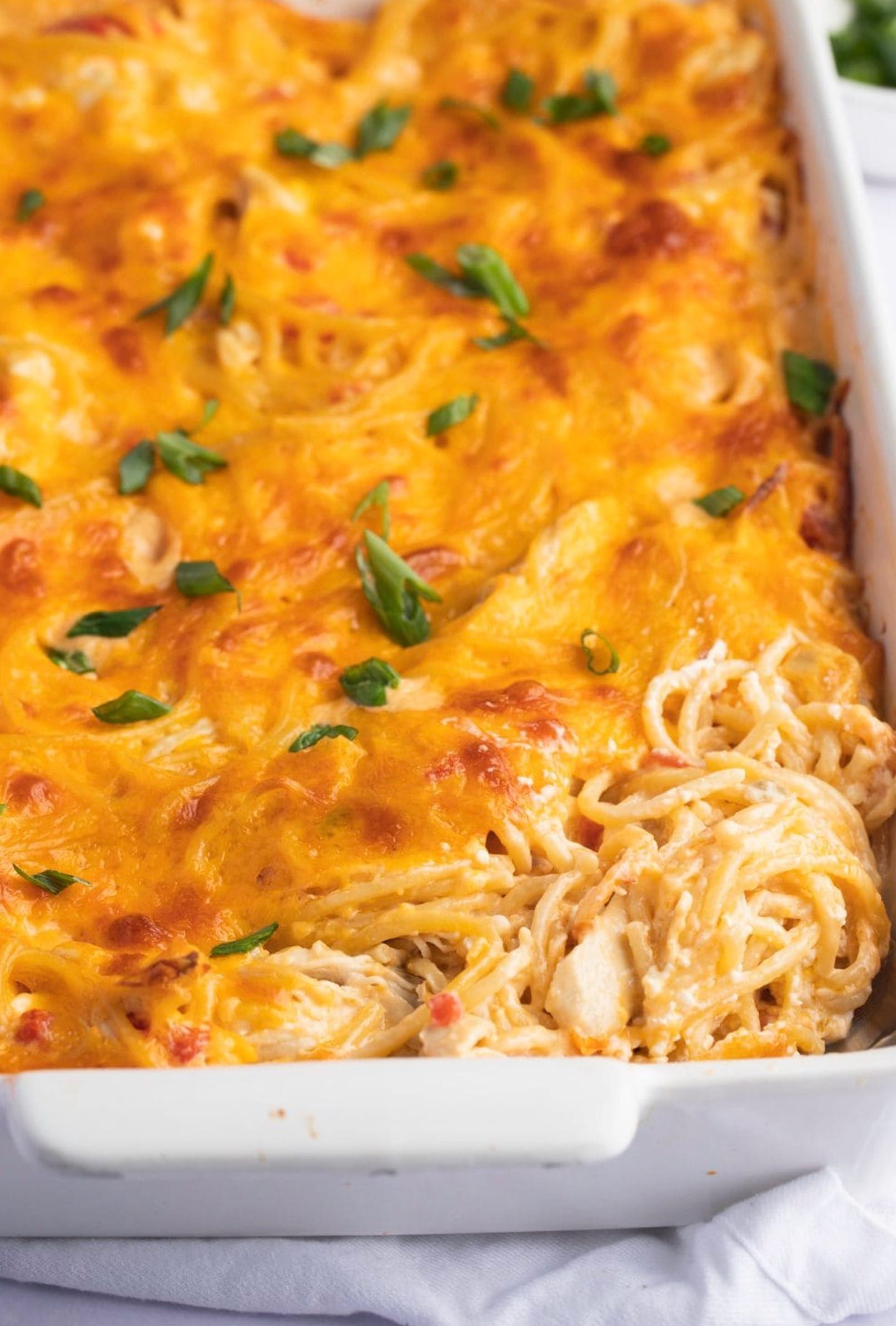 For the best Rotel chicken spaghetti, cook your pasta al dente. It will keep cooking in the oven. You can use rotisserie chicken to save time. Just shred it before adding to the dish.
