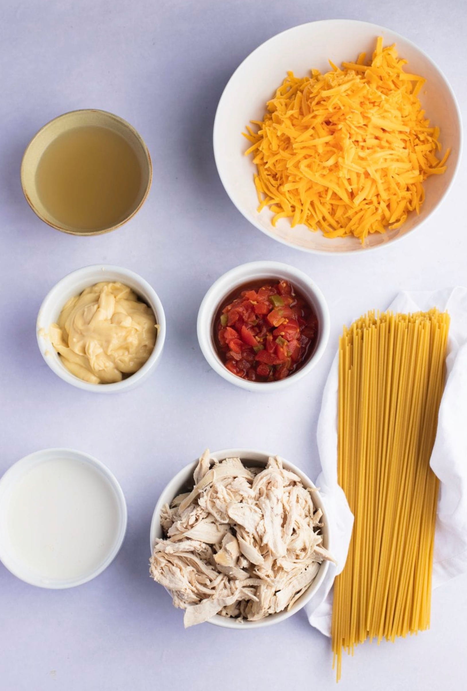 Here’s everything you’ll need to make this tasty Rotel chicken spaghetti: