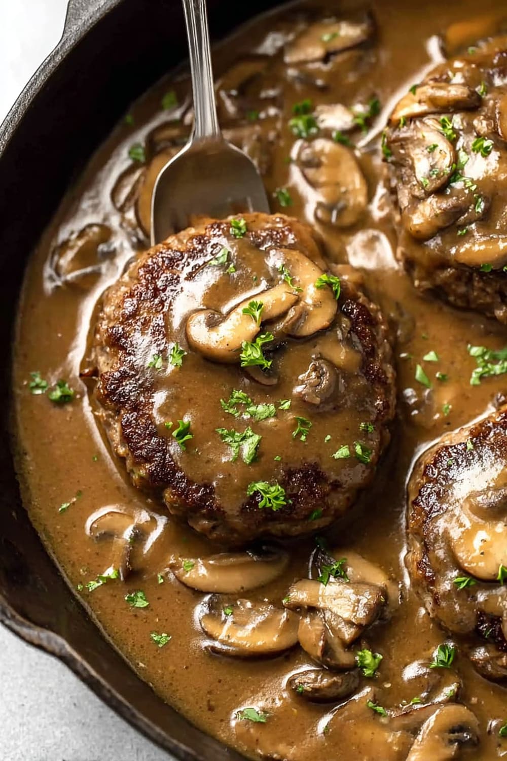 - 11 Serve the Salisbury steaks immediately, generously topped with the mushroom gravy. These are absolutely perfect over creamy mashed potatoes, buttered egg noodles, or rice. Sprinkle with fresh chopped parsley for a pop of color if desired.