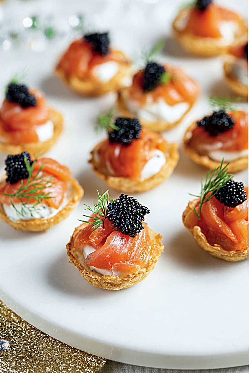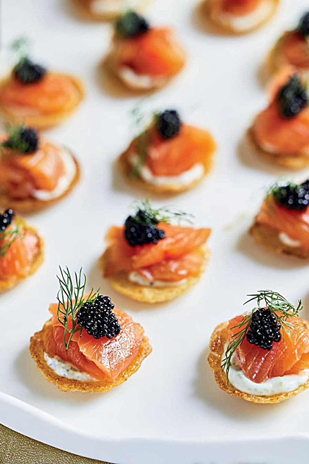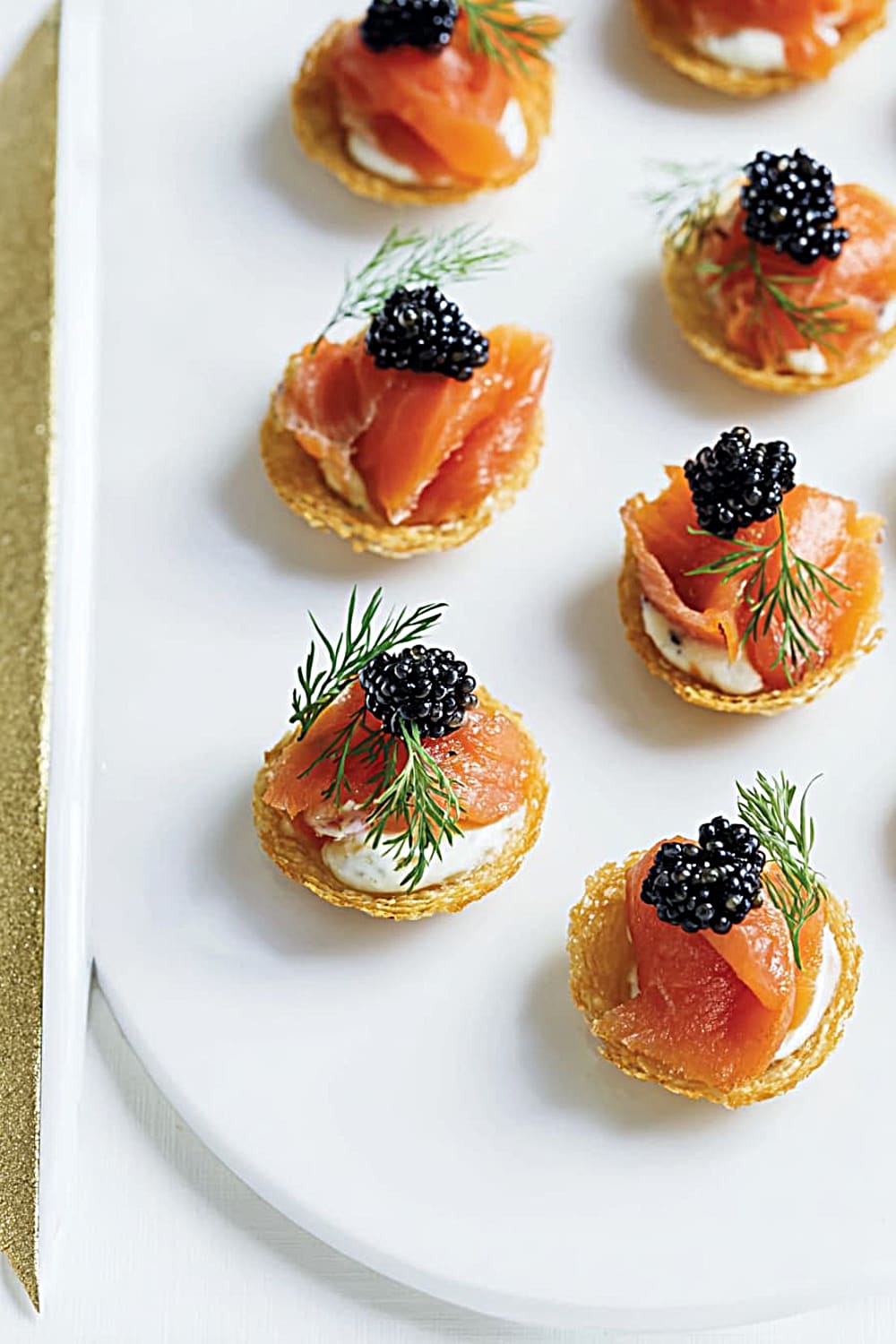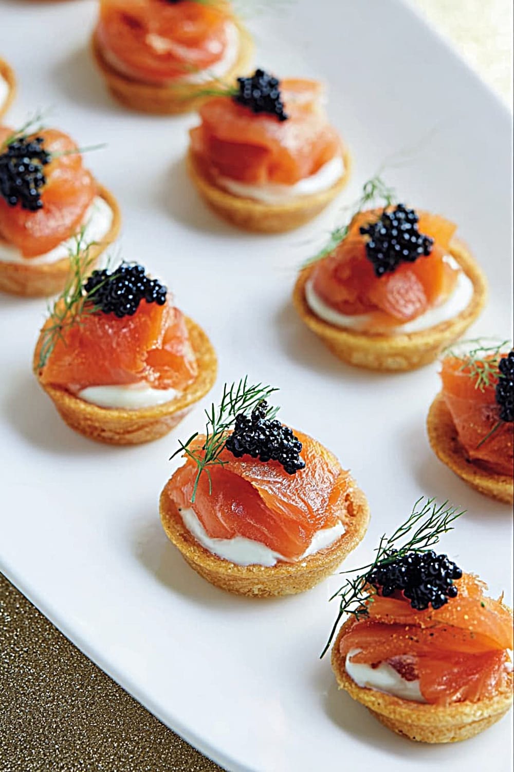 Build a Titanic-themed dinner party starting with these canapés, followed by beef Wellington or roasted duck as the main course. For brunch entertaining, serve alongside eggs Benedict, fresh fruit, and Danish pastries. Create a Scandinavian feast with Swedish meatballs, rye bread, and lingonberry sauce. New Year’s Eve menus shine with these canapés followed by rack of lamb and chocolate soufflé.
