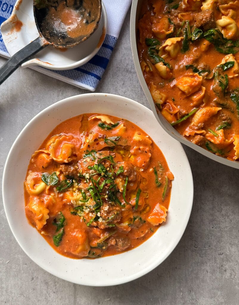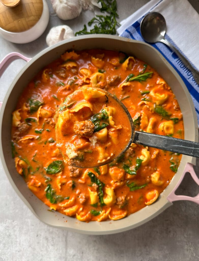 You’ll find these ingredients at most grocery stores. Feel free to swap in your favorite type of tortellini or sausage. The recipe is flexible, so have fun with it!
