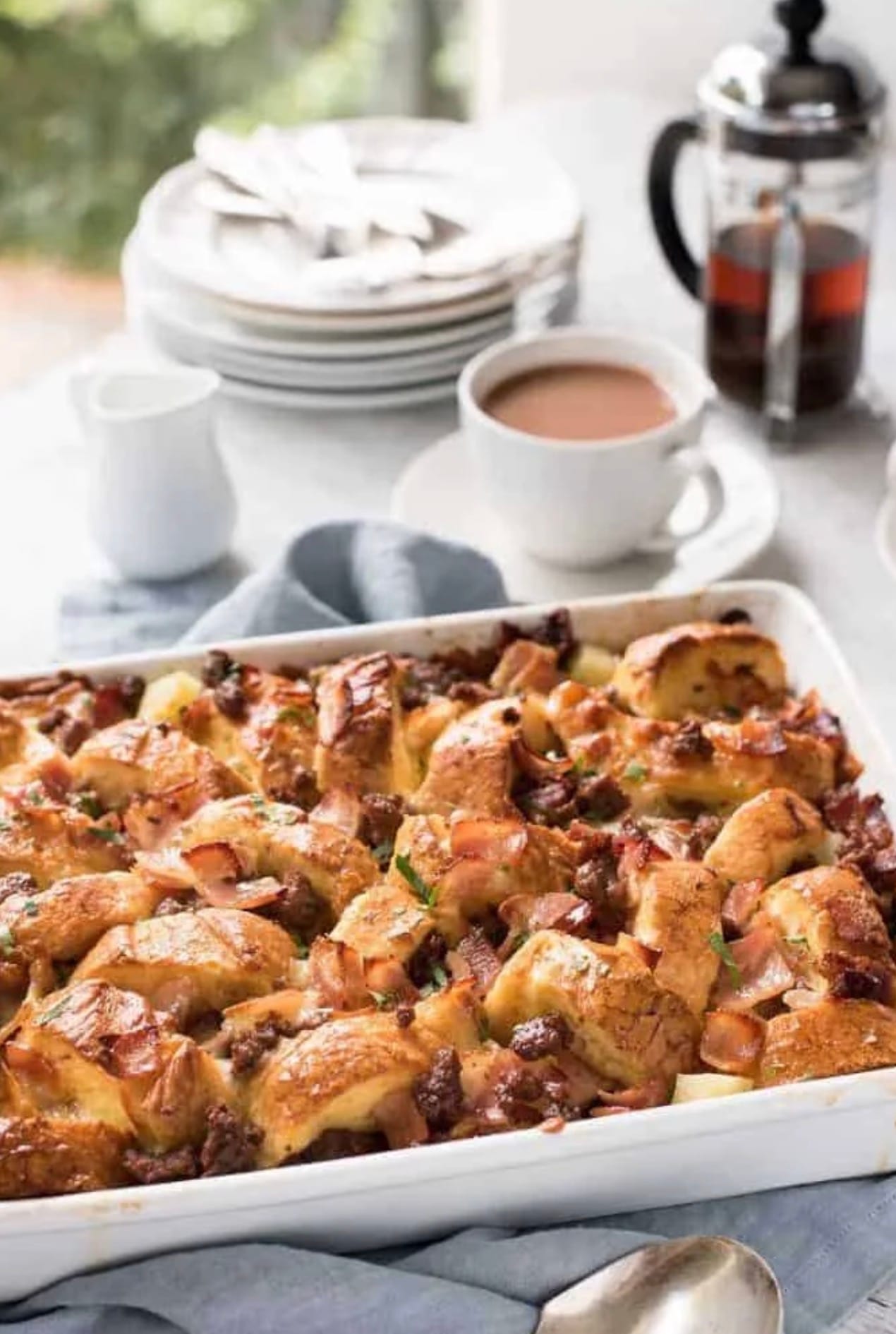 You can prep this casserole the night before. Just cover and refrigerate. In the morning, let it sit at room temperature for 30 minutes before baking.