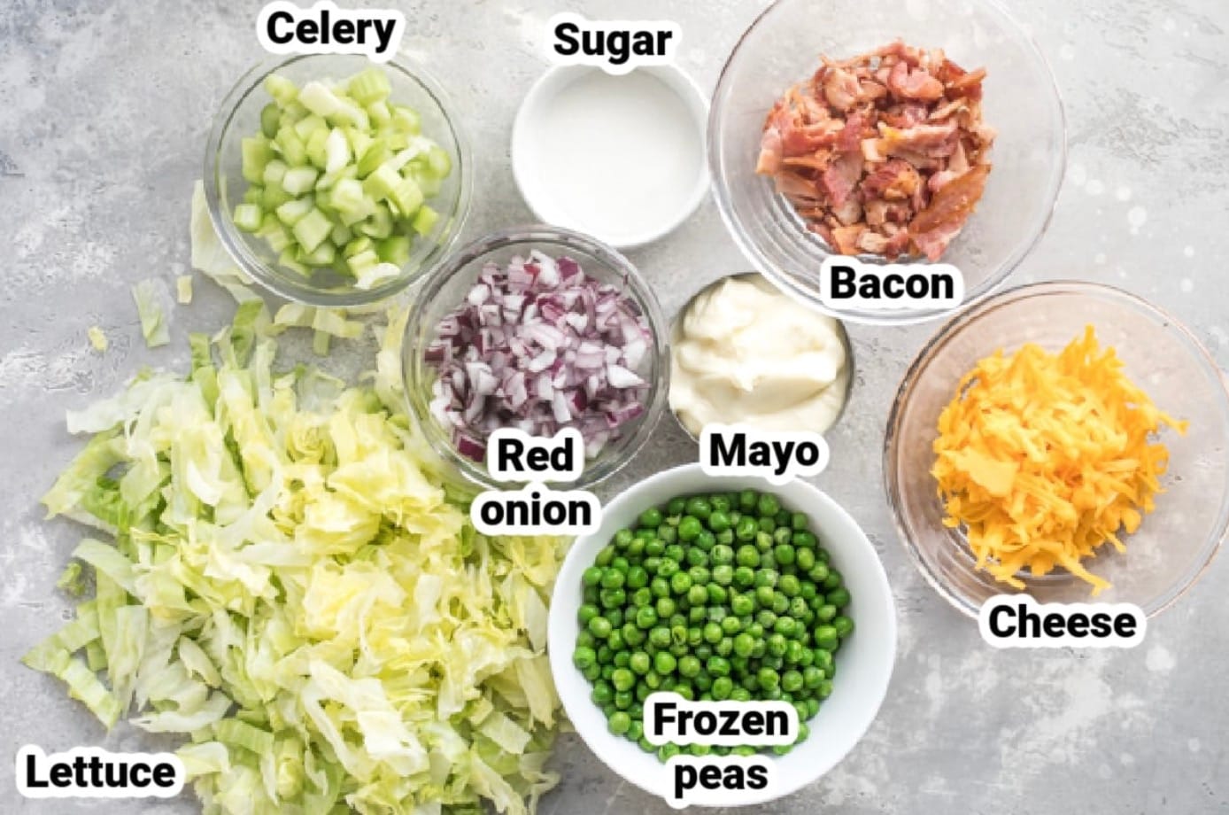 Here’s what you’ll need to make this tasty Seven Layer Salad: