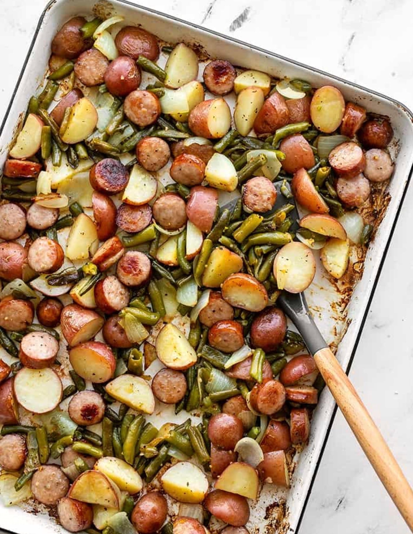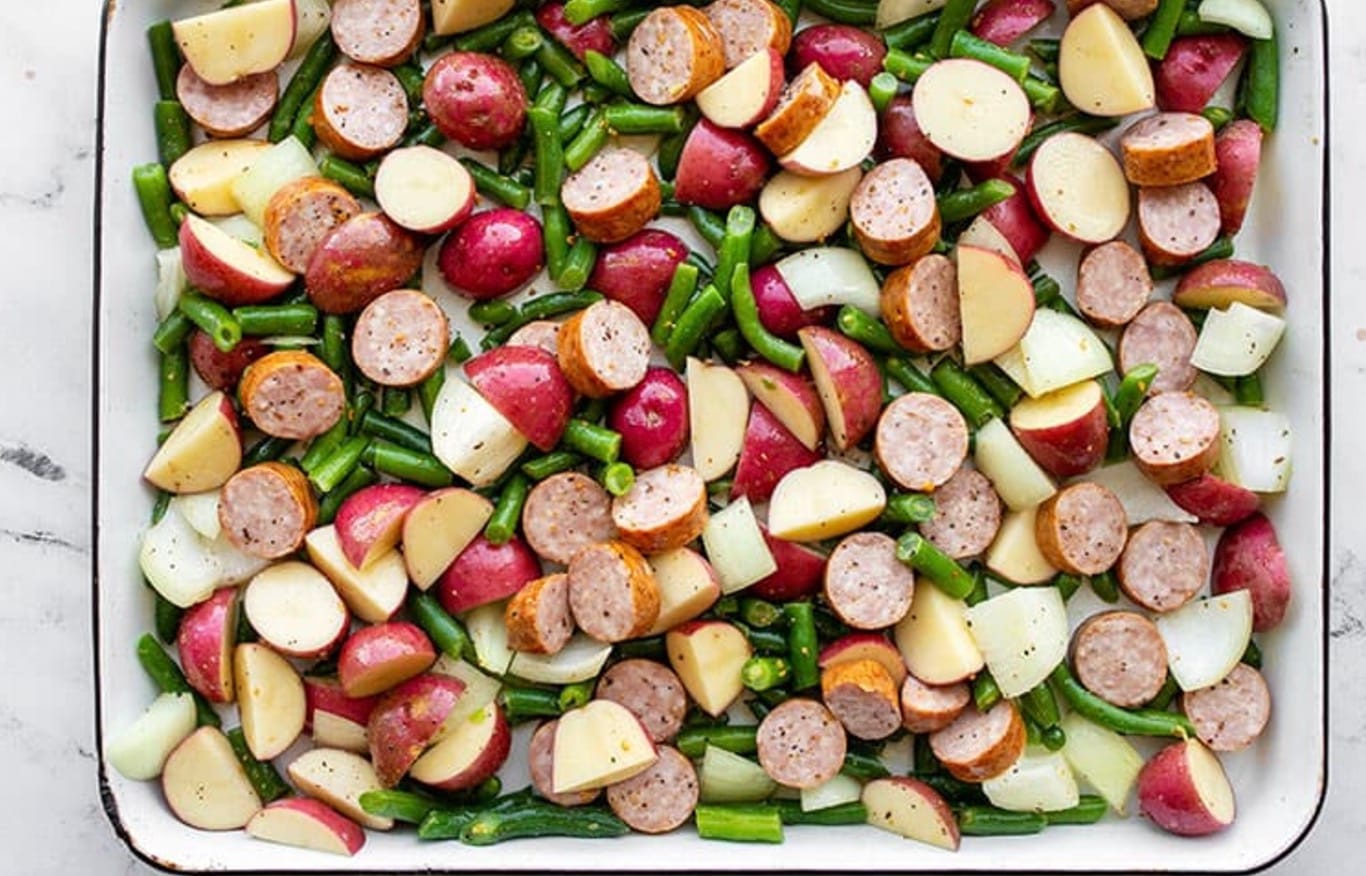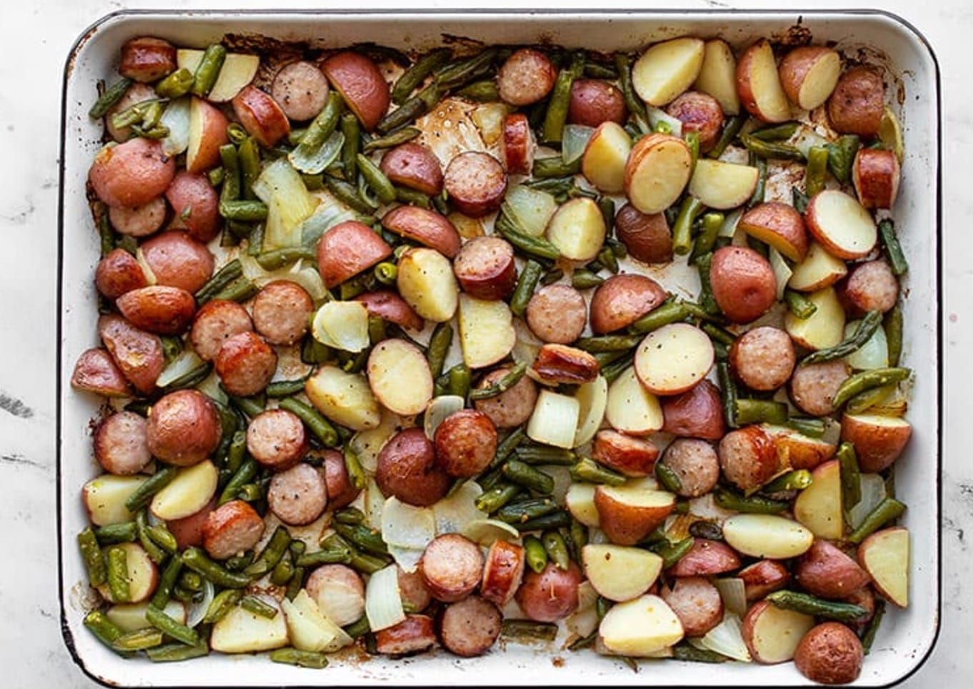 Sheet Pan Kielbasa Potatoes and Green Beans