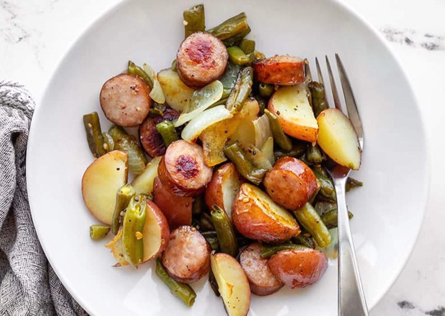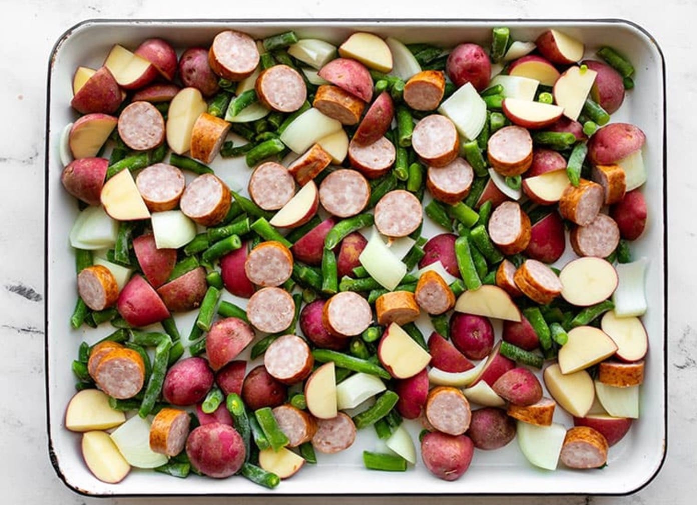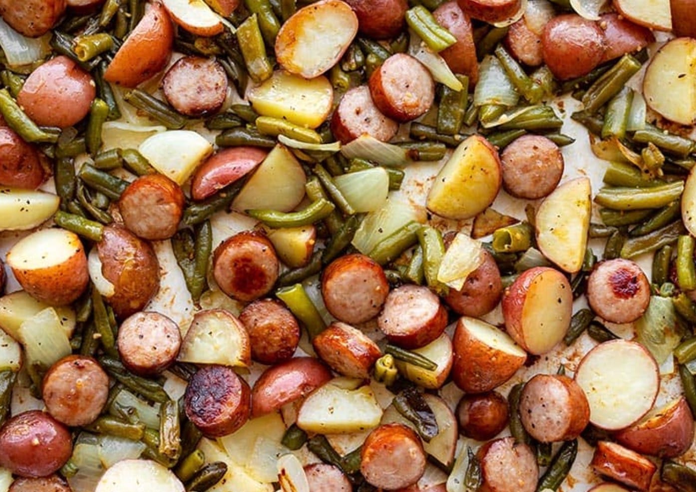 Sheet Pan Kielbasa Potatoes and Green Beans
