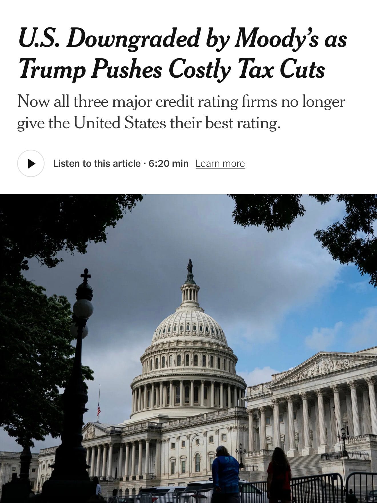 On Friday evening, Moody’s announced its decision to lower the United States’ credit rating from AAA to Aa1.