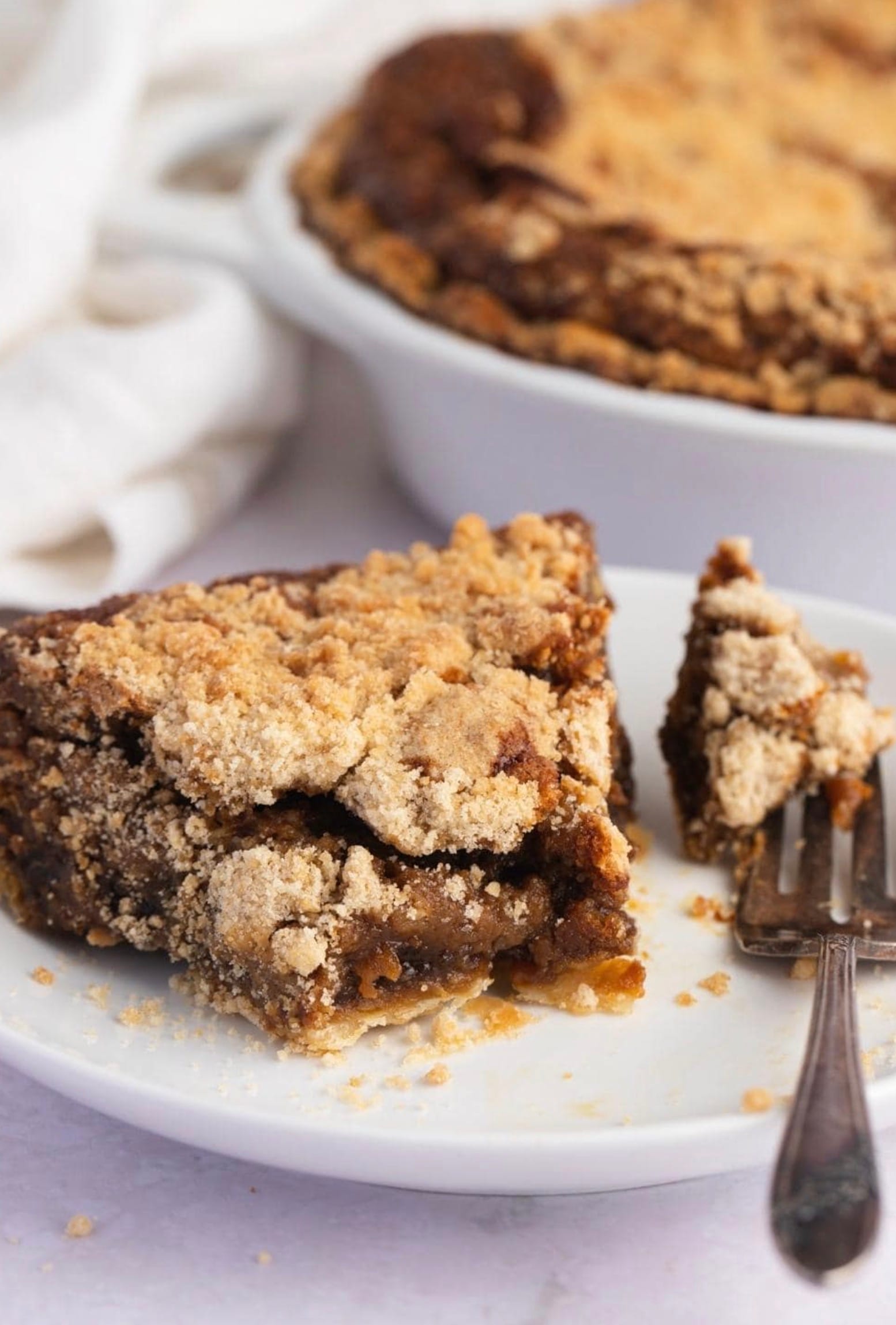 The pie’s filling is made with molasses and brown sugar, giving it a rich taste. A crumbly topping adds texture and extra sweetness. Get ready to enjoy a slice of comfort food that’s been loved for generations.