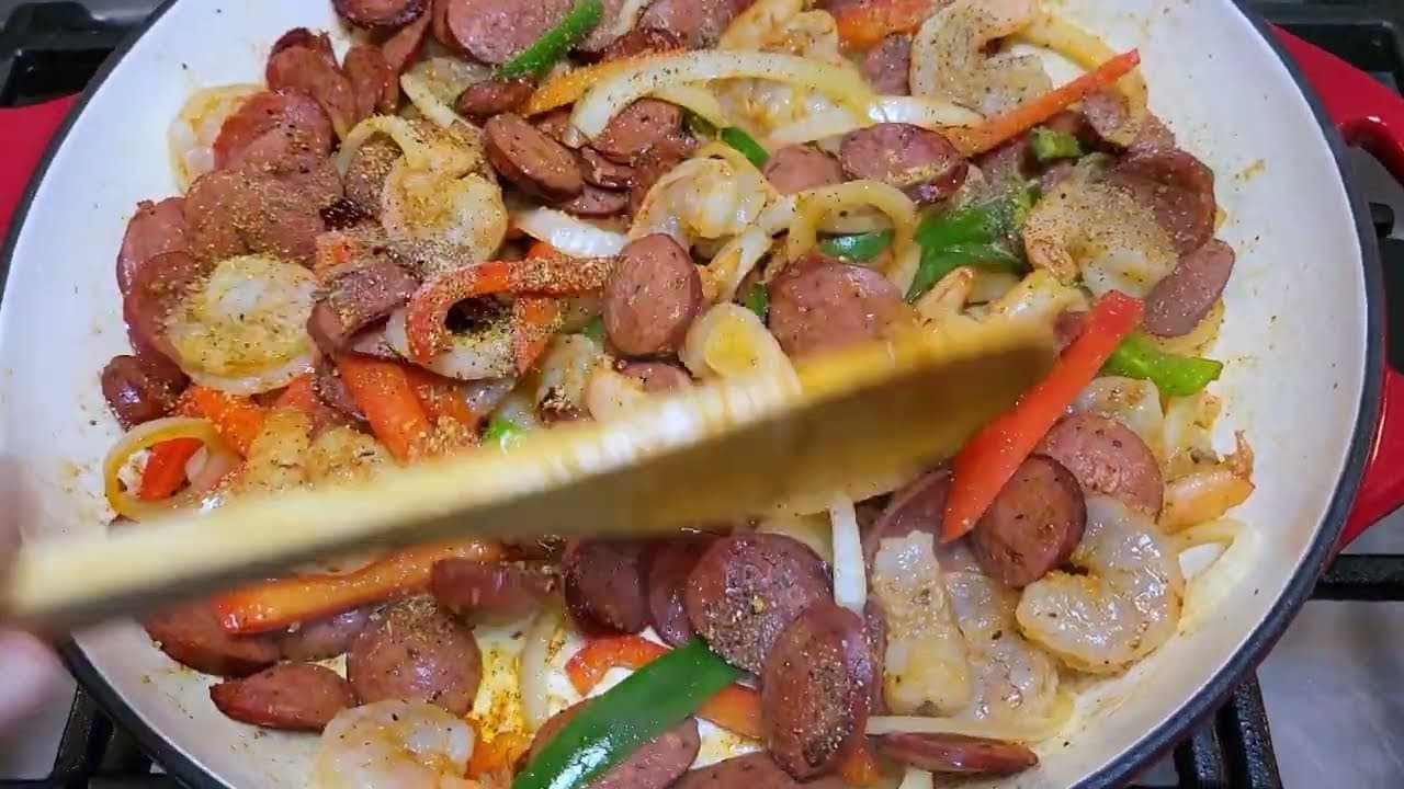 This quick and easy shrimp and sausage skillet is a perfect weeknight meal. Packed with flavor and ready in just 15 minutes, it’s a versatile dish that can be served with rice or used as a filling for tacos.
