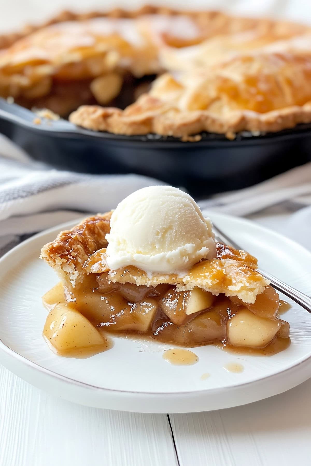 Serve your skillet apple pie with a scoop of vanilla ice cream or a dollop of whipped cream for an extra special treat.