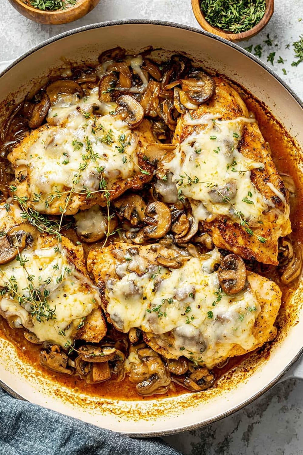 This skillet French onion chicken with mushrooms proves that restaurant-quality meals don’t require a culinary degree or hours of prep work. With its perfect balance of protein, vegetables, and rich flavors all melded together in one beautiful cast iron skillet, it’s destined to become your new go-to recipe for impressing family and friends. The combination of tender chicken, caramelized onions, earthy mushrooms, and that gloriously bubbly gruyere cheese creates a meal that’s both comforting and sophisticated – exactly what you need when you want to treat yourself to something special without the stress of complicated cooking techniques.