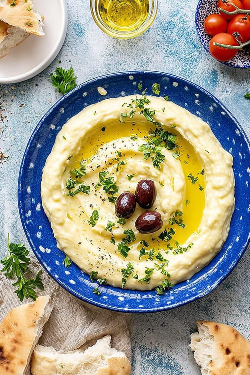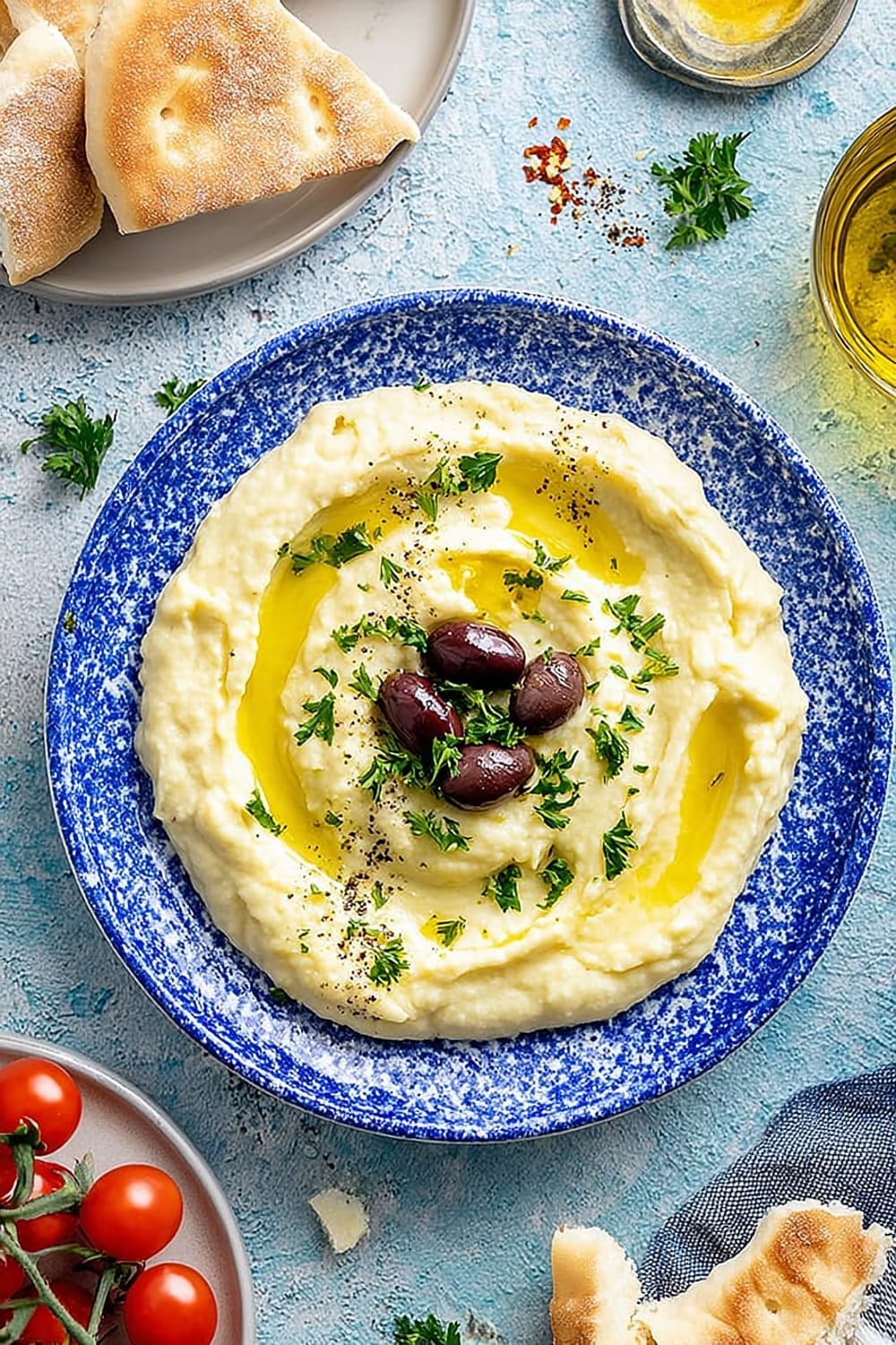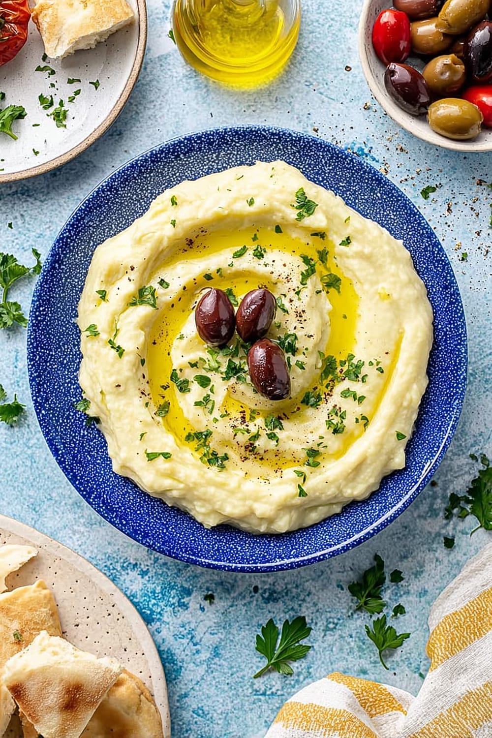 Double easily for large gatherings – use a stand mixer with paddle attachment for larger batches. Presentation tip: Create decorative swirls with the back of a spoon, drizzle with golden olive oil, and garnish with paprika, fresh herbs, or pomegranate seeds for stunning visual appeal.