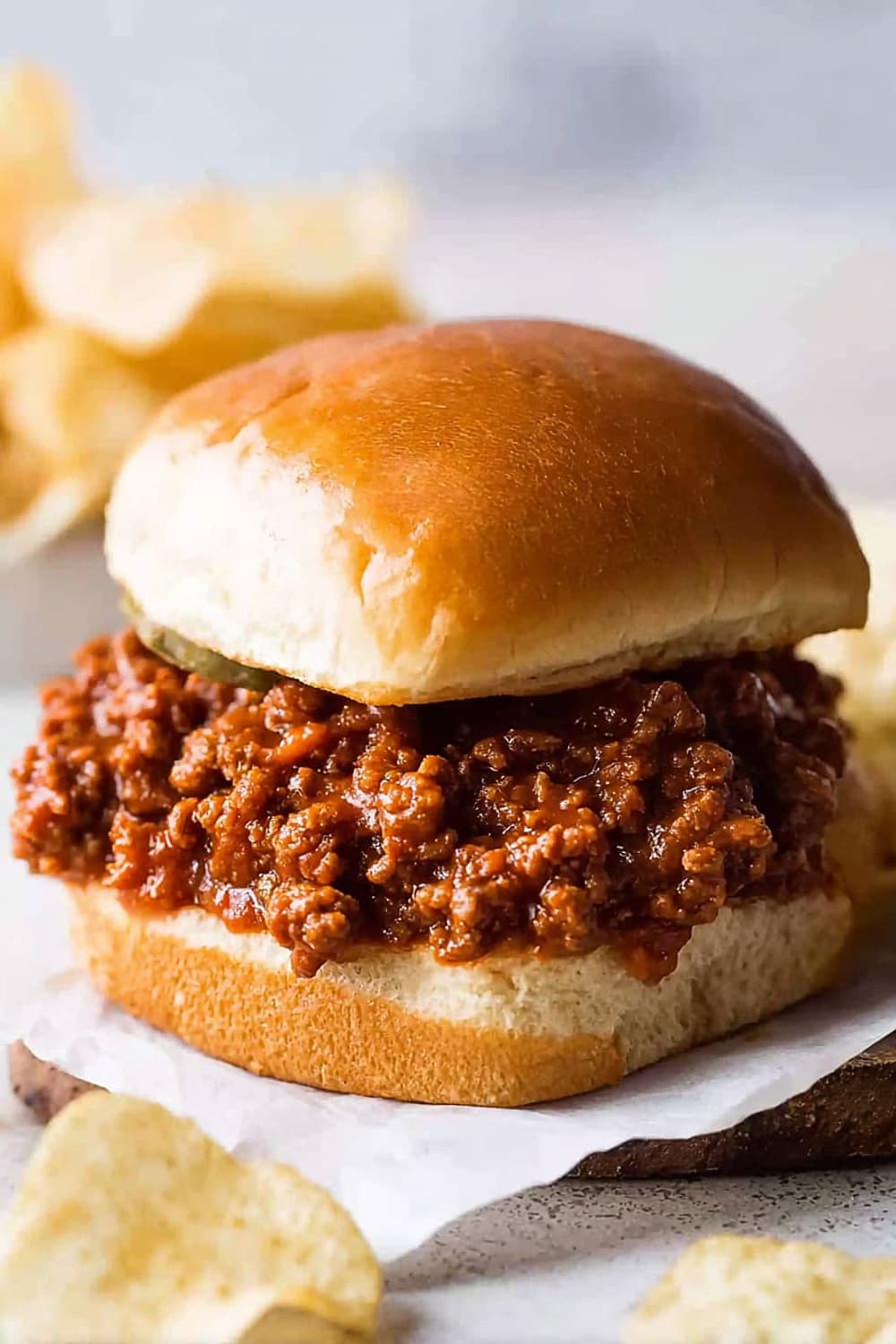 The rich, tangy-sweet sauce clings to every bite of perfectly seasoned ground beef, creating that magical mess that somehow tastes even better when it’s dripping down your chin.