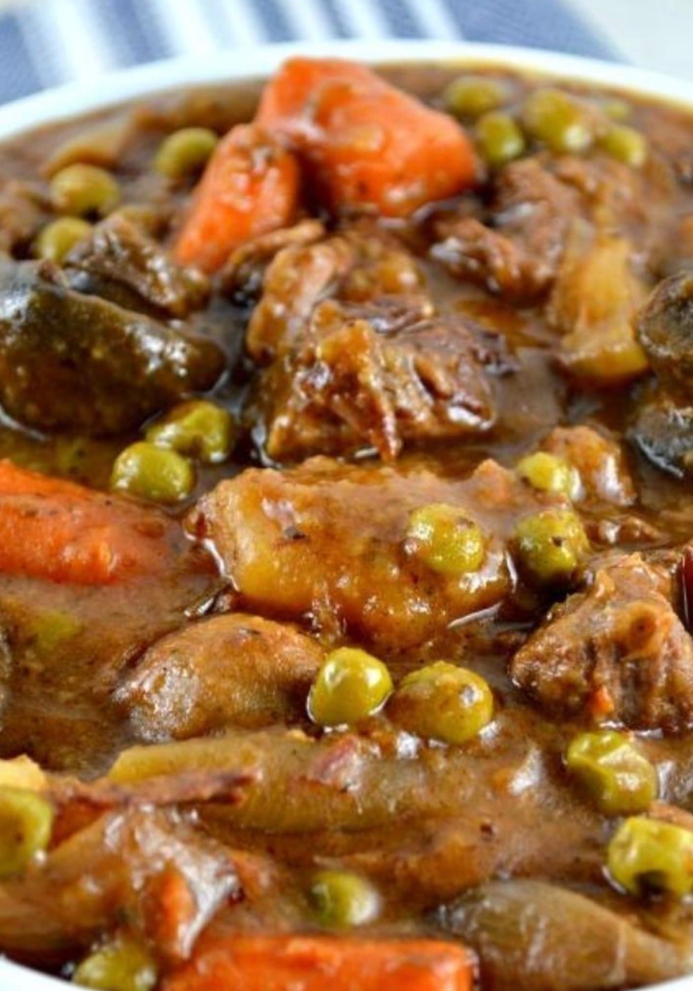 The rich broth is packed with chunky vegetables like potatoes, carrots, and mushrooms. A mix of seasonings adds depth, while tomato soup gives it a silky texture. This stew is sure to warm you up from the inside out.