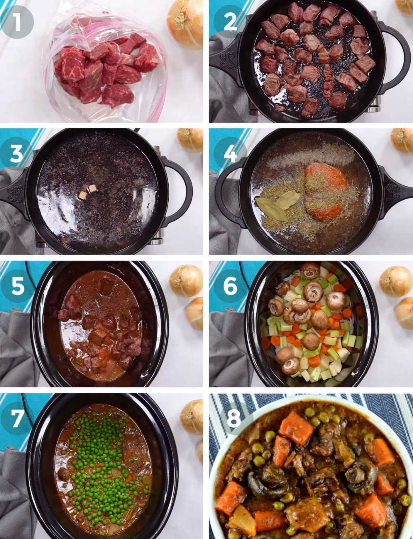 For the best flavor, brown the beef cubes before adding them to the slow cooker. This extra step adds depth to your stew.
