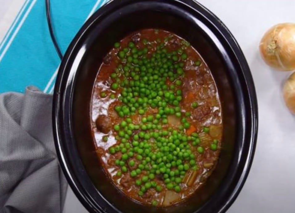 Cover and cook on low for 8 hours. Check if you need more water. Add 3/4 cup thawed peas 30 minutes before serving.