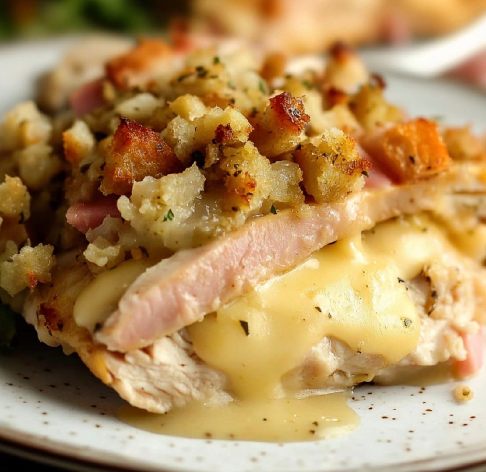 Serve your chicken cordon bleu hot. Spoon extra sauce and stuffing over each portion for extra yumminess.