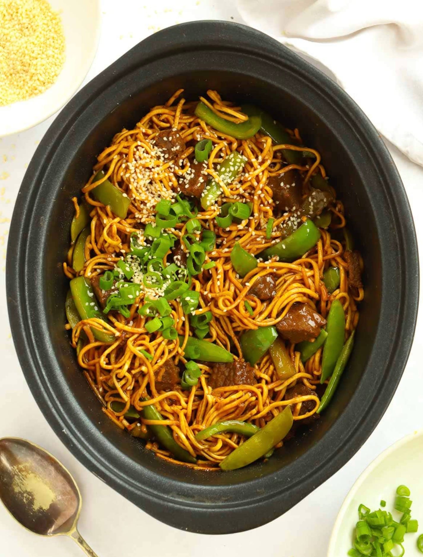 The recipe uses simple ingredients like beef, garlic, ginger, soy sauce, and noodles. You’ll love how the flavors mix as it cooks. At the end, you add veggies and noodles for a complete meal. It’s great for busy families or anyone who wants a tasty dinner without much work.
