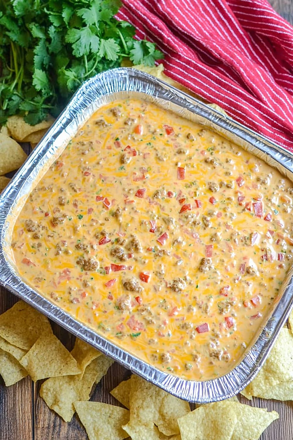 - Slow cooker with warming function – Great for keeping the queso at serving temperature during long parties