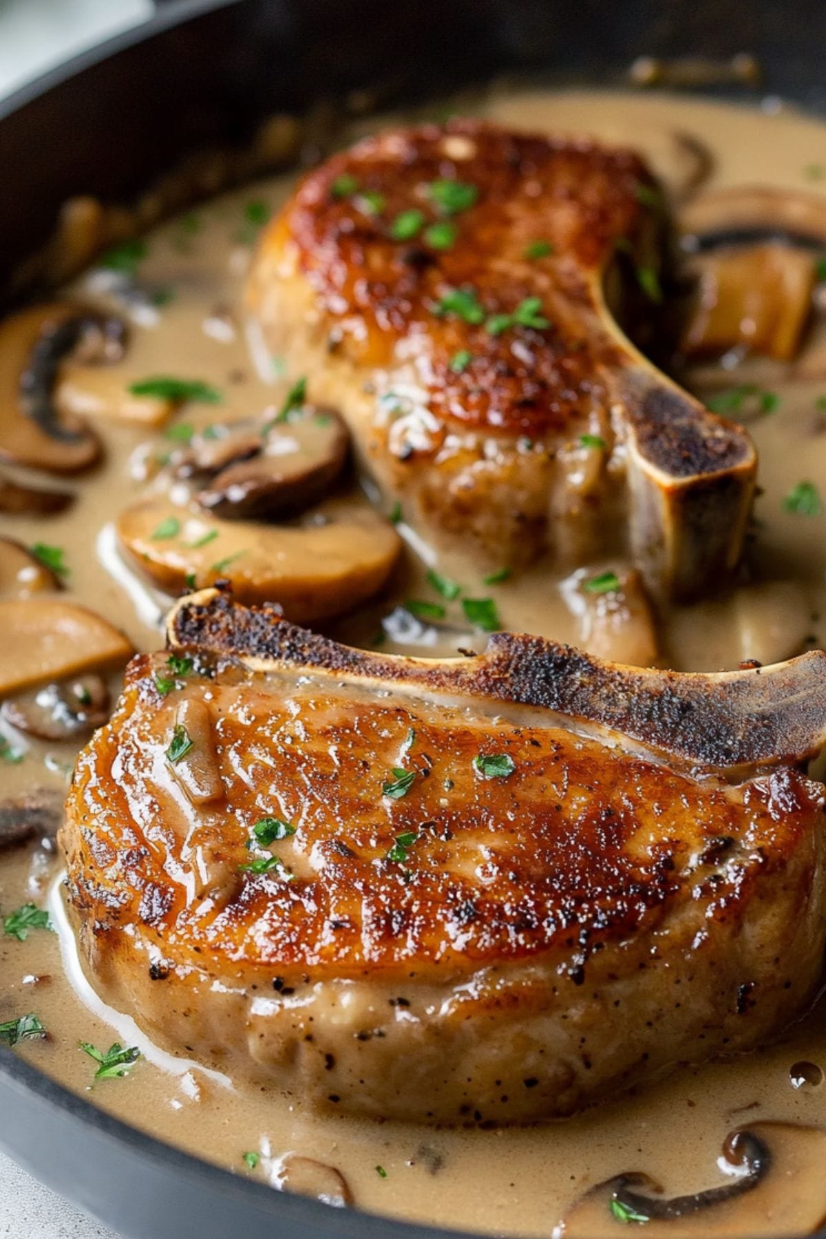 For a lighter version, use boneless pork chops and skip the cream. You can also add veggies like bell peppers or spinach to the gravy.