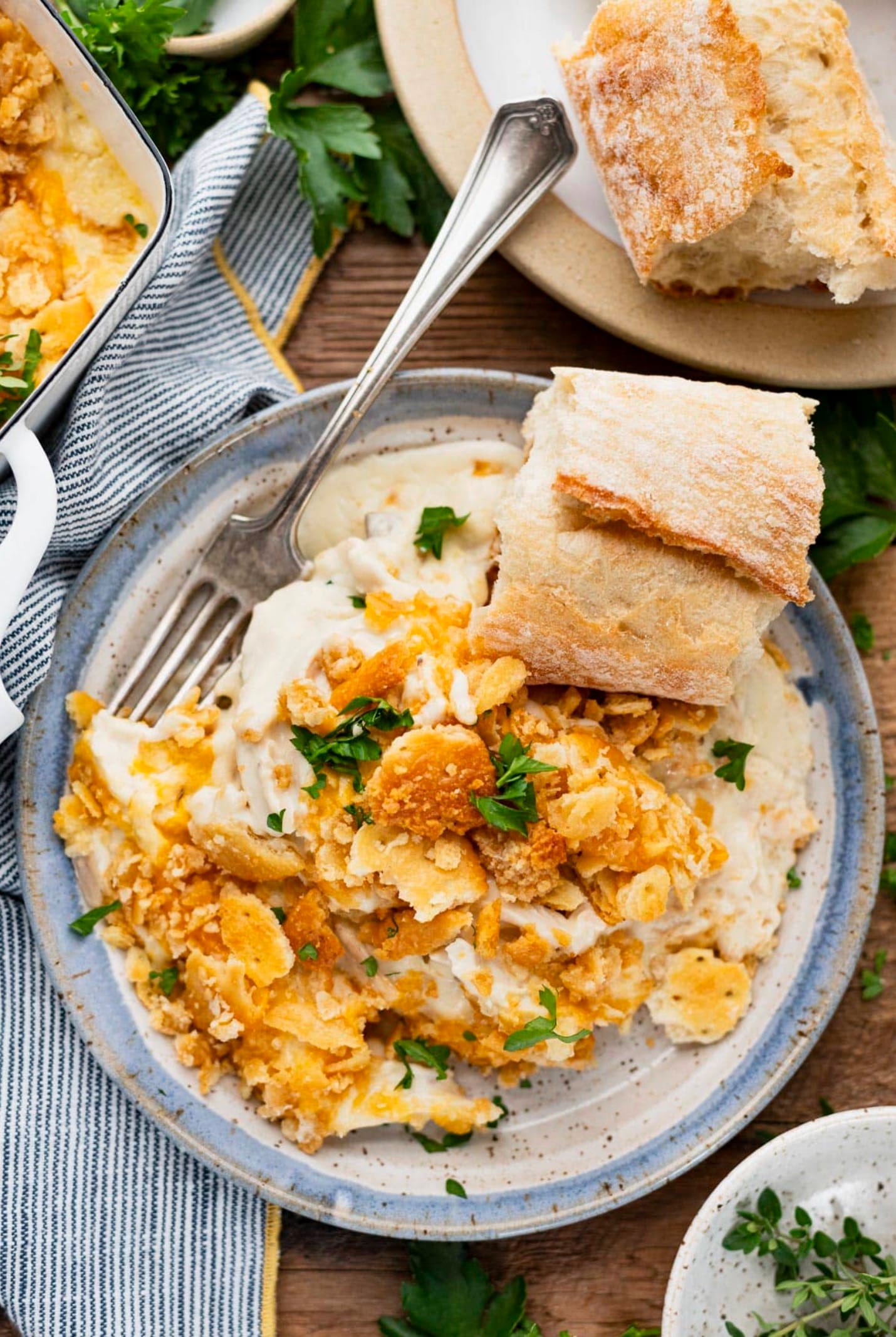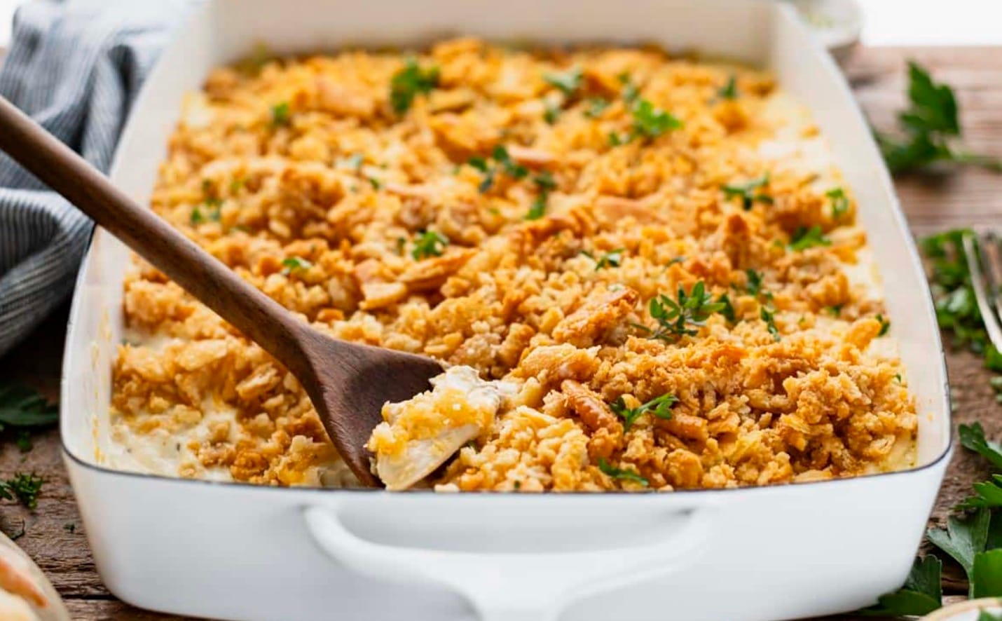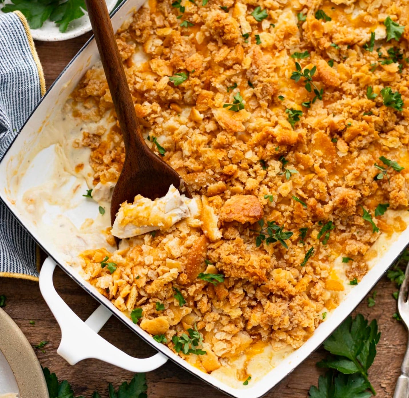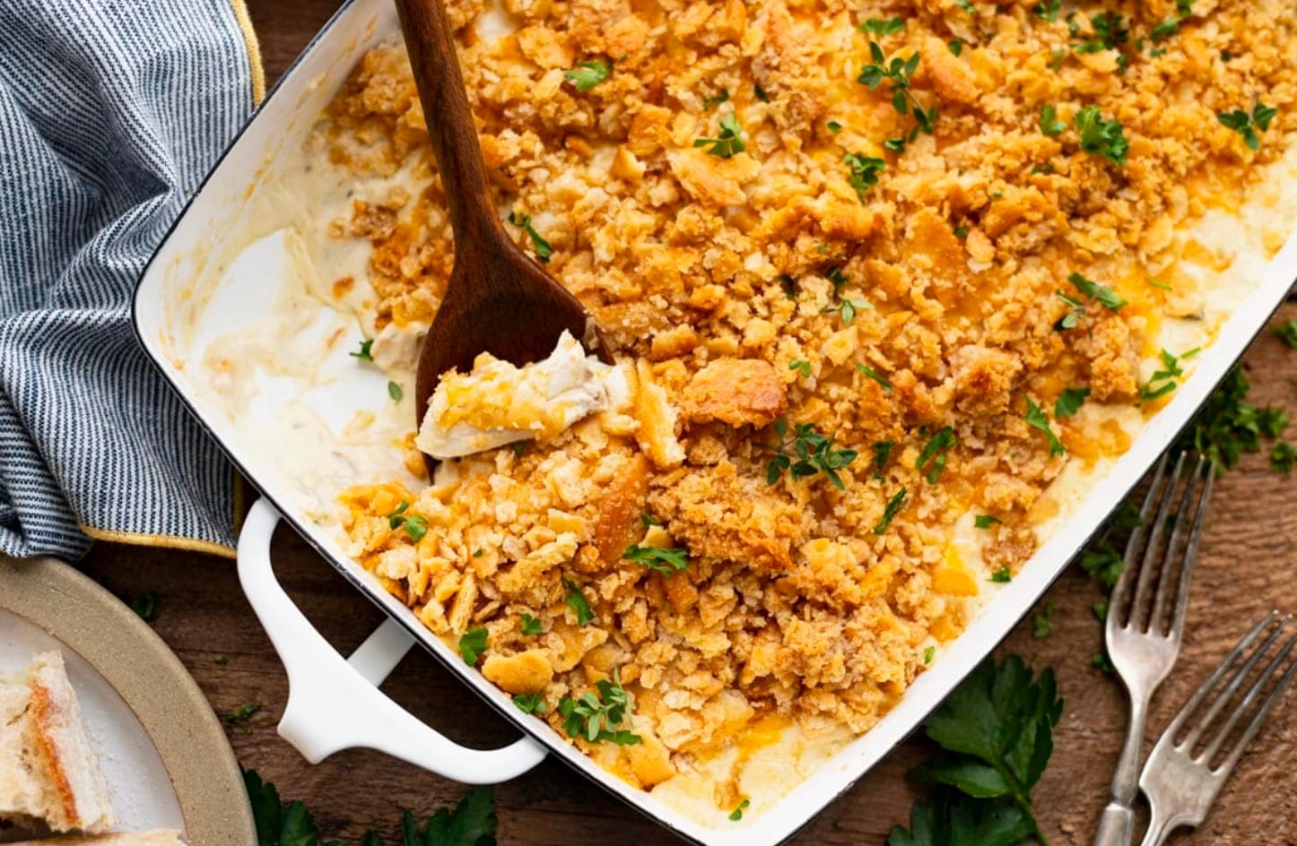 Crackers: If you’re out of Ritz, try crushed cornflakes or potato chips for a crunchy topping.
